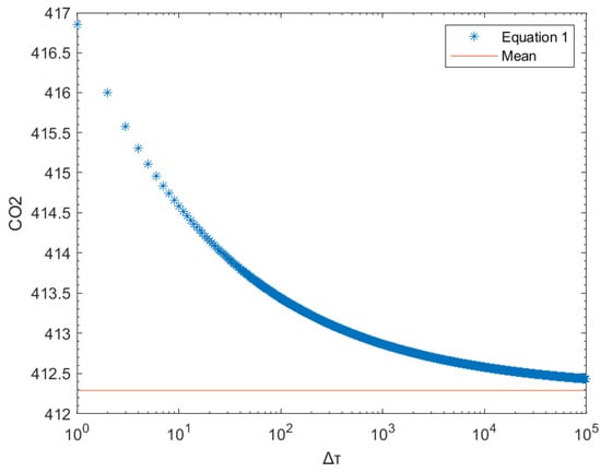 Application of Equation (1) to the real measurements of CO2. In this case, the experimental data were fed to Equation (1), and only the time resolution Δτ is increased. Note: The units for the data presented in Figure 1 and Figure 7 were not available to the author. Despite this, the relative comparisons and trends observed remain valid and are the focus of the analysis.