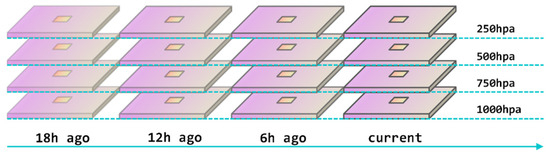The three-dimensional data capture the atmospheric environment. It is generated for each time instance in the two-dimensional dataset, with geopotential height [43] being the primary feature. These data are instrumental in capturing the three-dimensional evolution of tropical cyclones, further enhancing the model’s capability for track correction.