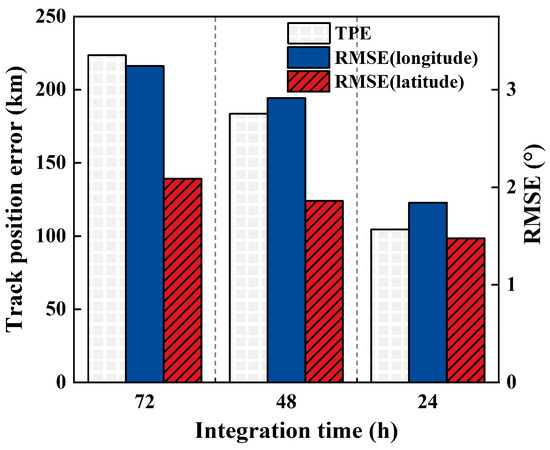 Comparative Analysis of Typhoon TPE and Latitude–Longitude RMSE at Different Integration Times in WRF Forecast Results.