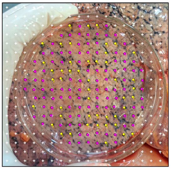 Figure 2. Representative photo of the surface of a lung lobe with the point test system overlaid on the image.