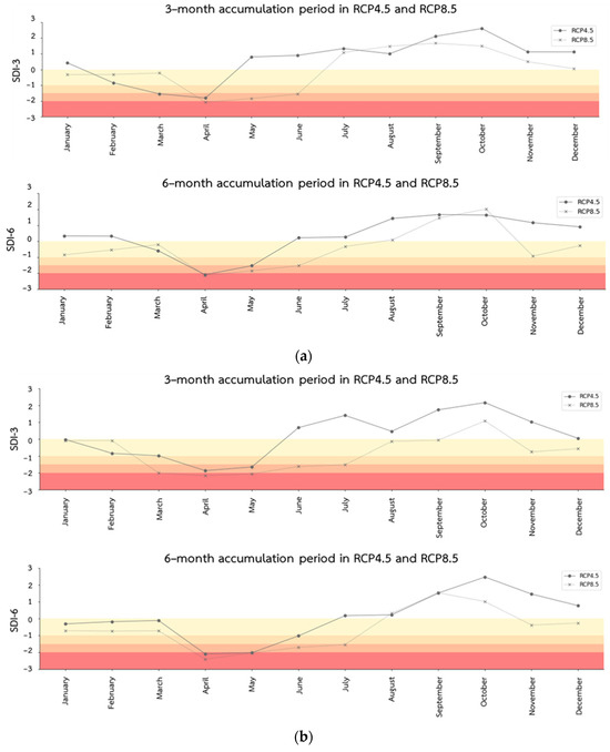 The findings suggest that future droughts in RCP8.5 scenarios may be more intense and frequent compared with historical periods. Severe droughts are likely to occur more frequently and with greater intensity in RCP8.5. The SDI-3 analysis indicates quick-developing, short-duration droughts, whereas the SDI-6 analysis shows more widespread and prolonged drought conditions, especially in RCP8.5.