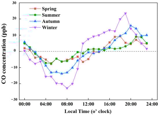Anomaly diurnal circle of CO concentrations at DMS during the study period. Spring: March to May; summer: June-August; autumn: September-November; winter: December-February.