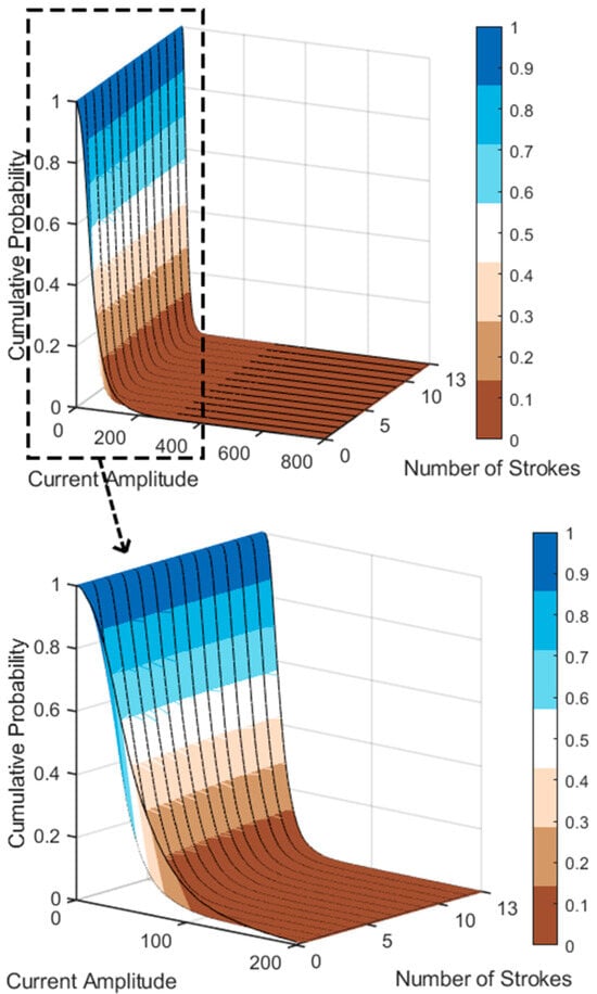 As indicated in the previous sections, the probability amplitude of lightning currents is not only related to whether it is the first return stroke but also to the number of subsequent strokes. Therefore, this paper analyzes the combined relationship between the two.