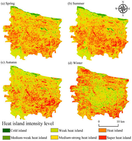 4.2.1. LST Inversion Results and UHI Intensity Classification