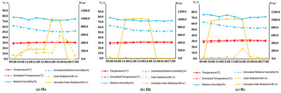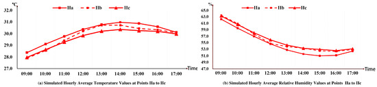 Simulated Results at Points to (a) Simulated Hourly Average Temperature Values at Points IIa to IIc, (b) Simulated Hourly Average Relative Humidity Values at Points IIa to IIc.