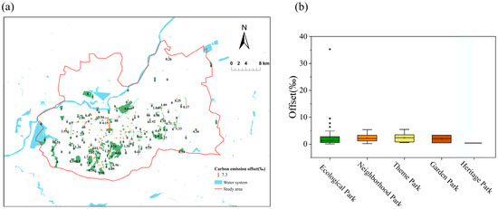 (a) Contribution to carbon neutrality; (b) carbon offset by park type.
