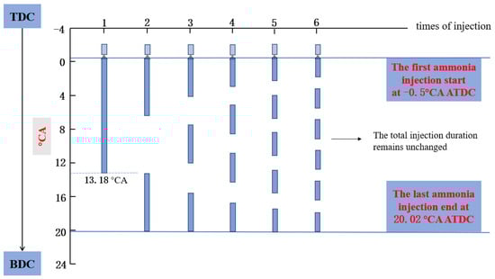 - Xu, X.; Wang, Z.; Qu, W.; Song, M.; Fang, Y.; Feng, L. Optimizations of energy fraction and injection strategy in the ammonia-diesel dual-fuel engine. J. Energy Inst. 2024, 112, 101455. [Google Scholar] [CrossRef]