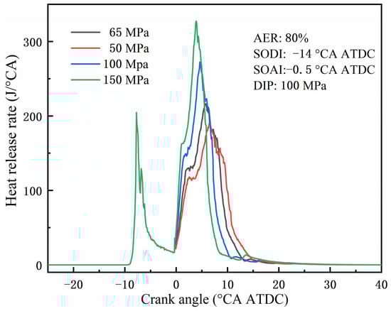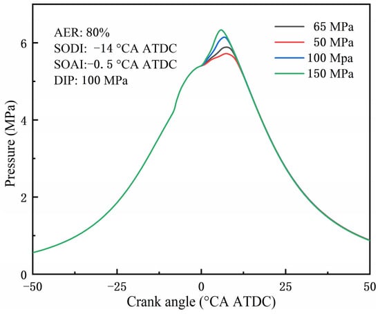 - Increasing the injection pressure of ammonia can enhance its contact with the mixed gas and promote combustion. When TSOI = 2, increasing AIP from 50 MPa to 150 MPa increases the peak cylinder pressure, and there is a significant increase in the peak heat release dominated by ammonia, but only a single peak, indicating that increasing AIP alone cannot achieve multi-stage heat release. N2O emissions increase with the increase of AIP, which is due to more ammonia participating in the oxidation reaction, while CO2, NOx, and NH3 emissions, although changing, are small.
