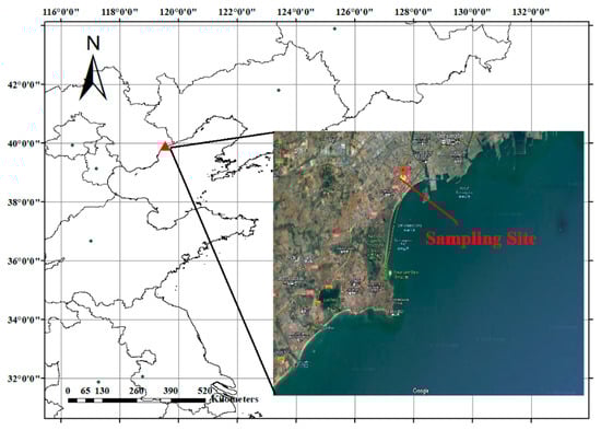 Qinhuangdao (QHD) is located in northern Hebei Province, with a population of approximately 3.1 million. It is one of the largest coal shipping ports in northern China and lies close to the Beijing–Tianjin–Hebei metropolitan area. The city is simultaneously affected by industrial activities, port-related operations, vehicular traffic, and marine meteorological processes, making it a representative site for investigating coastal urban mercury pollution. The sampling site for this study was located on the rooftop of the library at Hebei Normal University of Science & Technology in QHD, approximately 1 km from the coastline and about 40 m above ground level (Figure 1). A recent study investigating the dynamics of water-soluble inorganic ions used a neighboring rooftop site about 100 m away within the same campus, under highly similar environmental conditions. Both sites are similarly affected by local urban, industrial, port, and marine influences. That work identified several potential local emission sources relevant for atmospheric mercury, including a coal-fired power plant located approximately 4.5 km to the northwest, major port operations (QHD port, 1~10 km east), as well as residential heating, vehicular traffic, and shipping emissions. Thus, the environmental context and source characteristics around the current mercury sampling site are well represented by the findings of Lyu et al. (2025) [19].