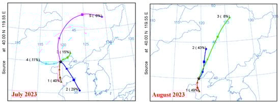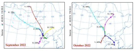 The results revealed clear seasonal differences in air mass origins and transport patterns, reflecting the varying influence of continental and maritime air masses (Figure 6). Specifically, continental air masses were dominated by long-range transport from northern regions (53–100% in winter) and short-range transport from the Beijing–Tianjin–Hebei area, with stronger contributions in autumn and winter.