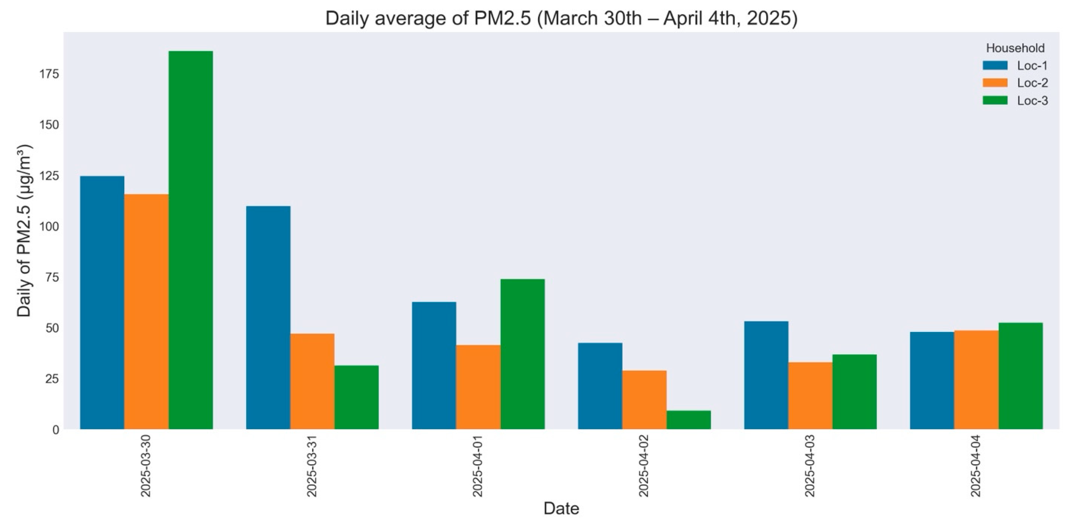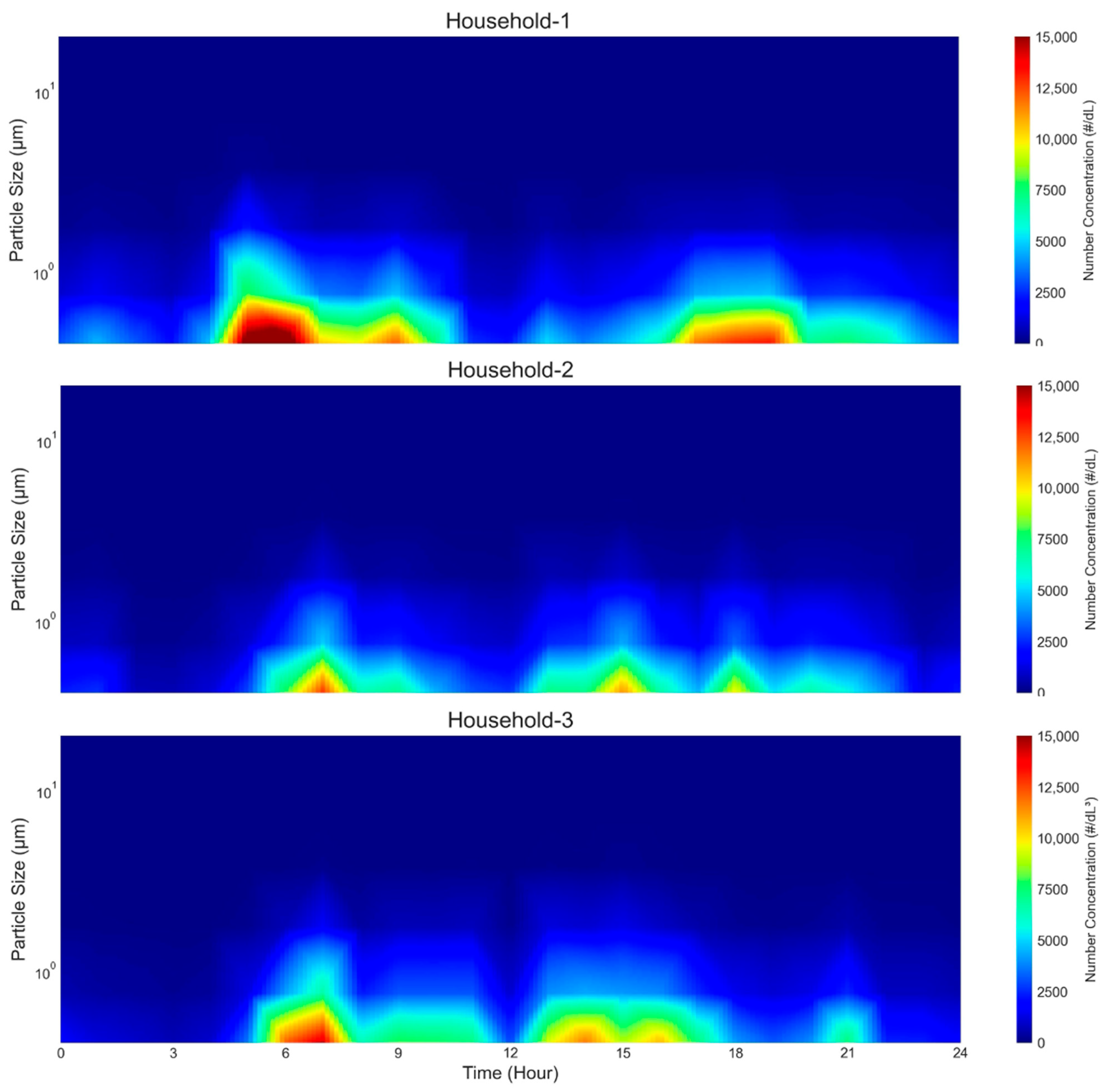 - Indu, G.; Sm, S.N.; Mahesh, P.A. Indoor air pollution in rural south Indian kitchens from biomass-fuel usage and the predicted lung deposition in women. Atmos. Environ. 2024, 336, 120732. [Google Scholar] [CrossRef]