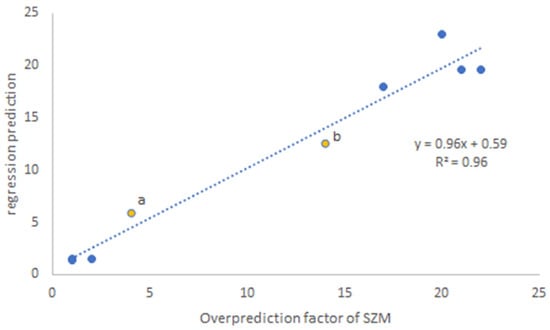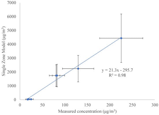 Linear regression of overprediction of SZM as a function of emission rate and ventilation.