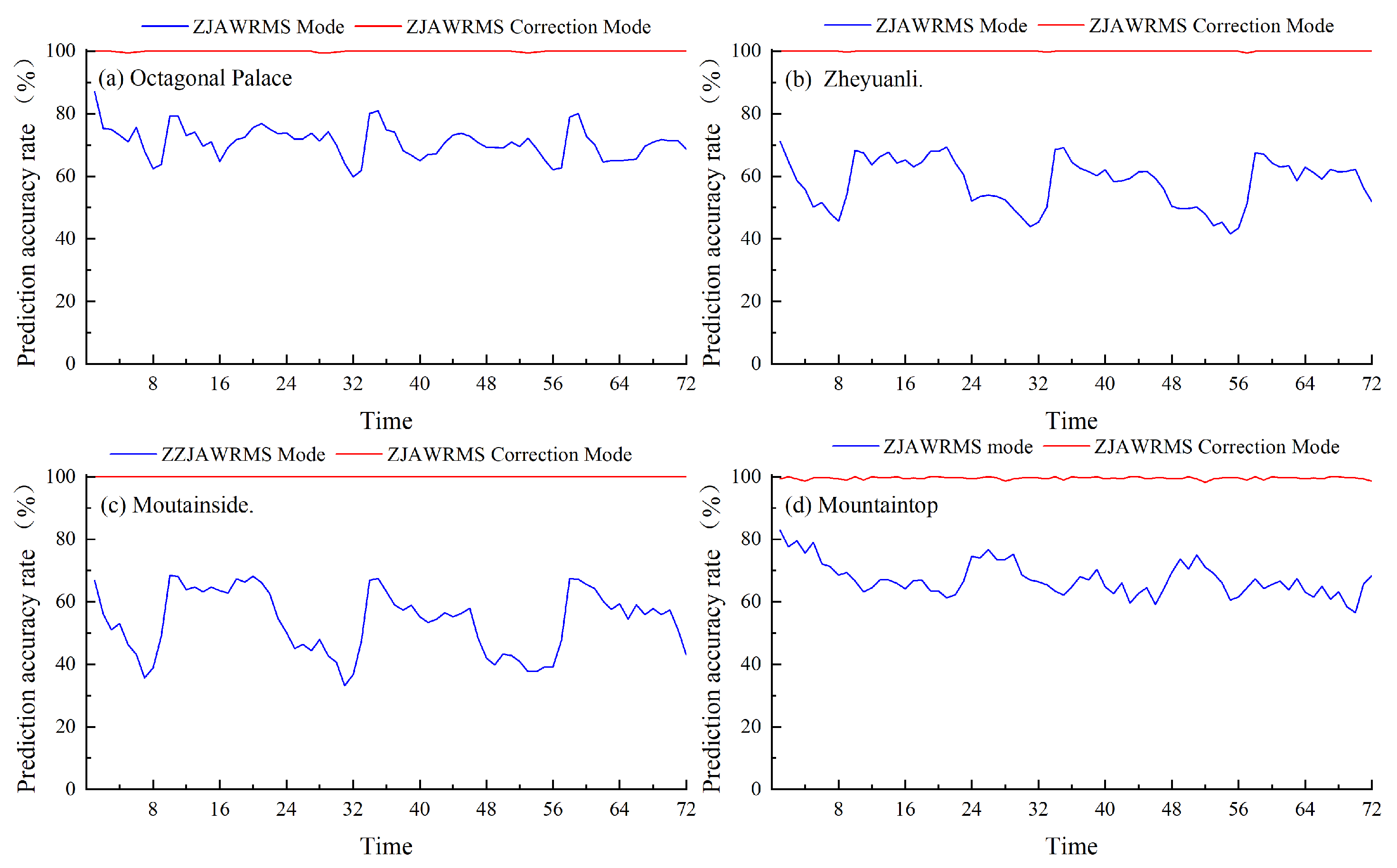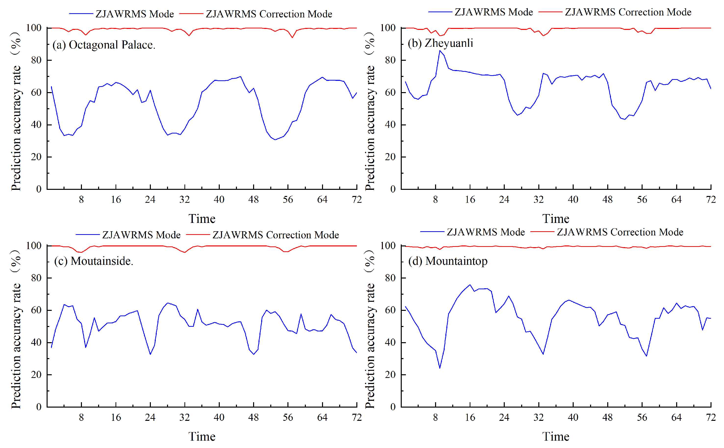3.1. Evaluation of ZJWARMS Forecasts and AI-Corrected Products