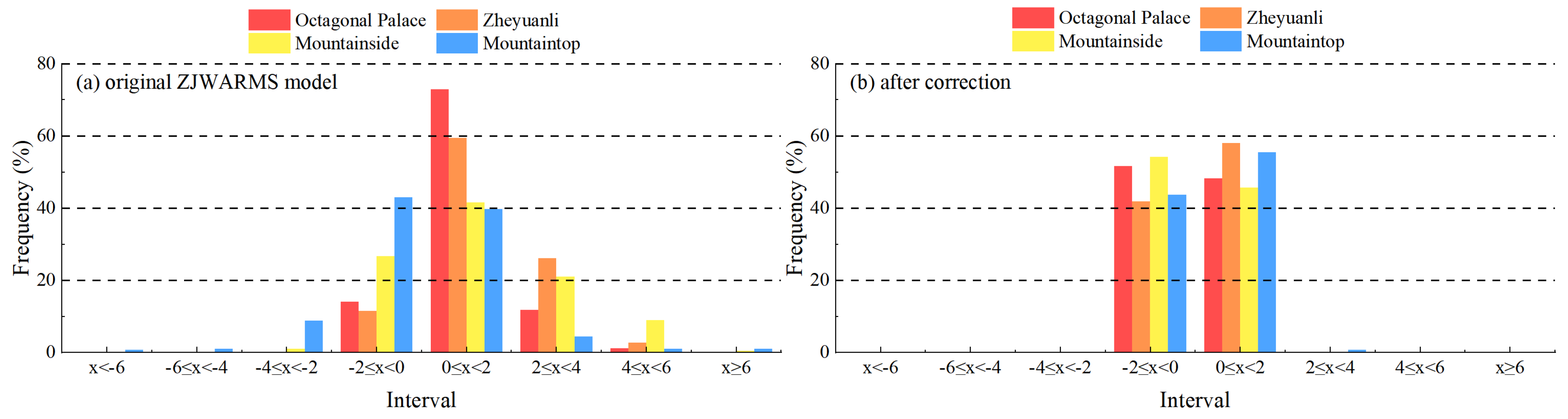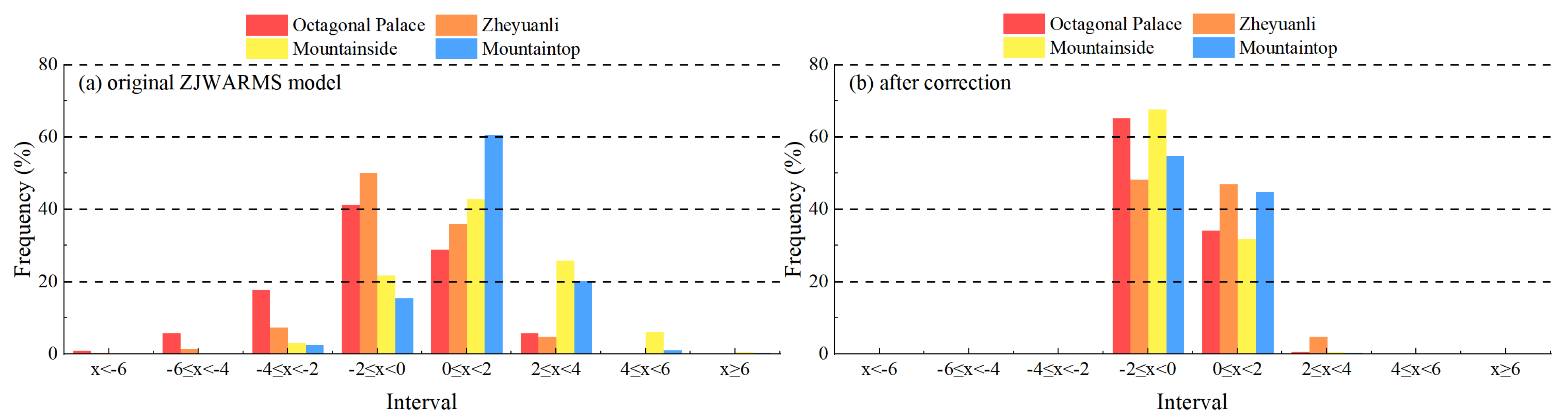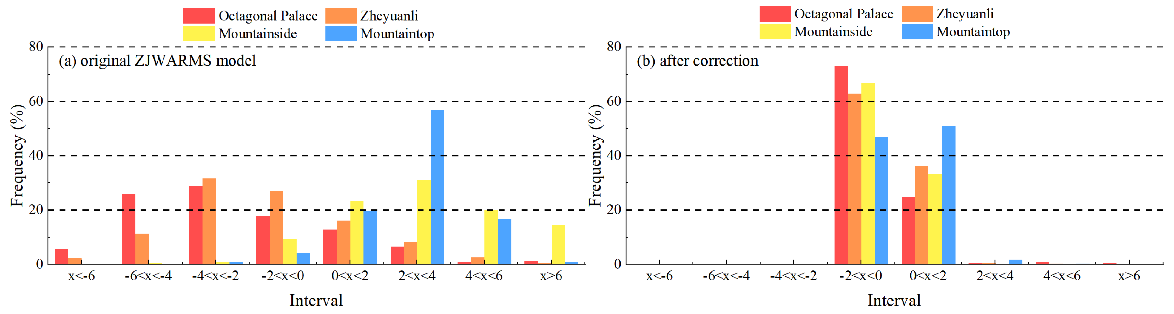 Zhang, Q.; Shi, Y.; Wang, Y.; Mou, S.; Zhu, Z.; Qian, T.; Mao, Z.; Yuan, S.; Han, L.; Lao, X. Assessment of the ZJWARMS Forecast Model’s Adaptability and AI-Based Bias Correction over Complex Terrain. Atmosphere 2025, 16, 1151. https://doi.org/10.3390/atmos16101151