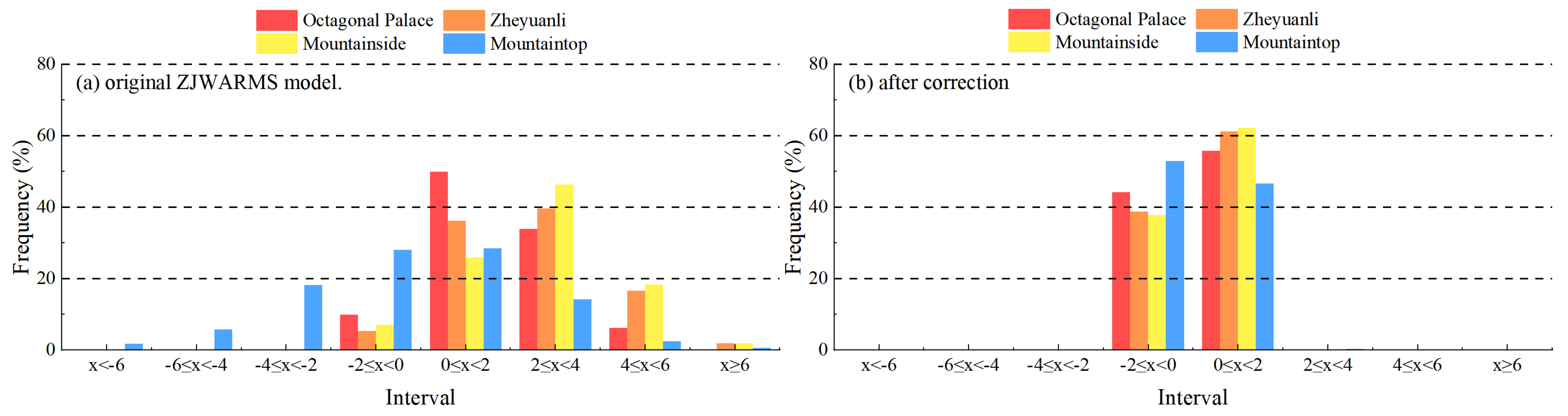 APA StyleZhang, Q., Shi, Y., Wang, Y., Mou, S., Zhu, Z., Qian, T., Mao, Z., Yuan, S., Han, L., & Lao, X. (2025). Assessment of the ZJWARMS Forecast Model’s Adaptability and AI-Based Bias Correction over Complex Terrain. Atmosphere, 16(10), 1151. https://doi.org/10.3390/atmos16101151