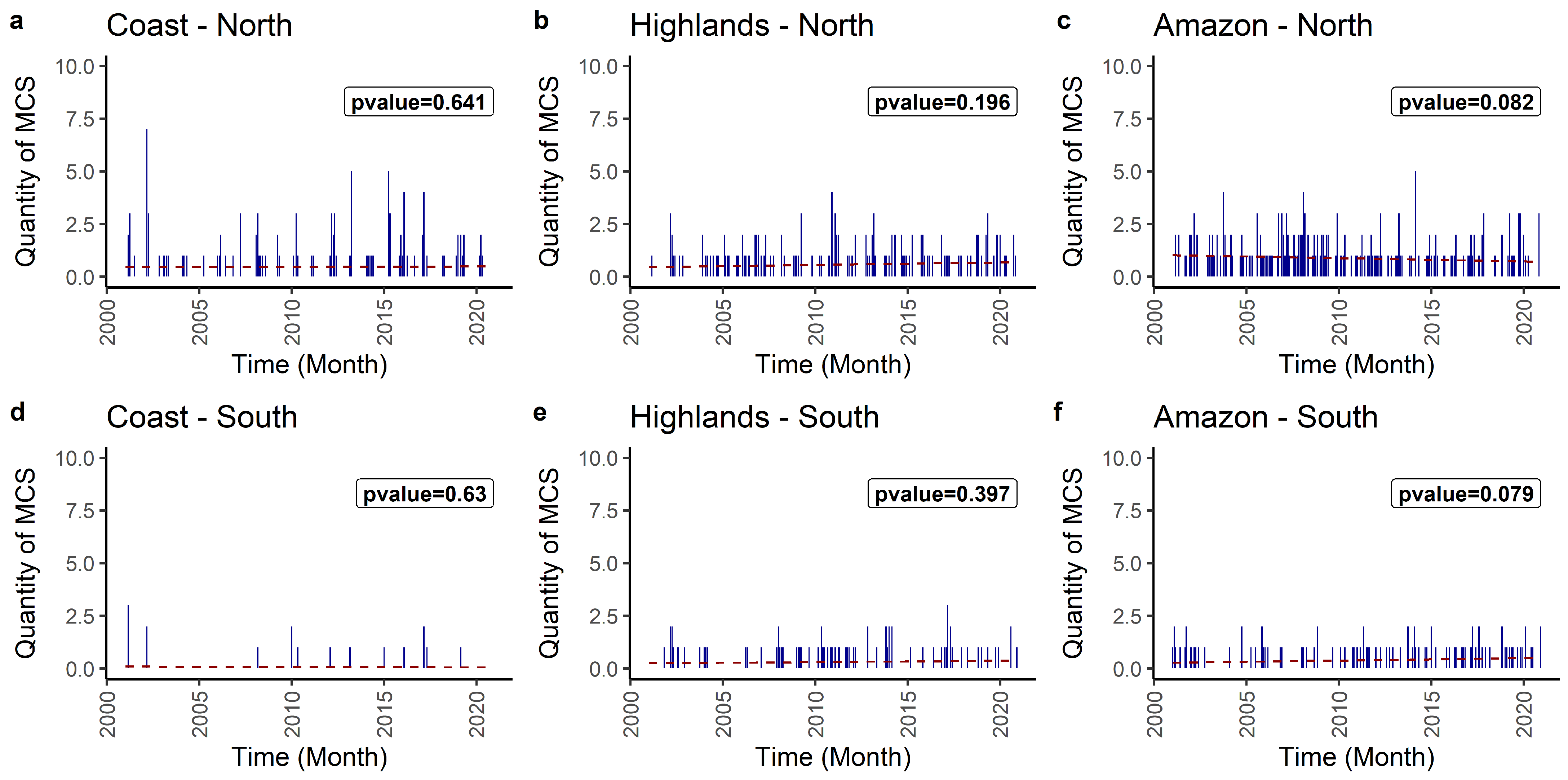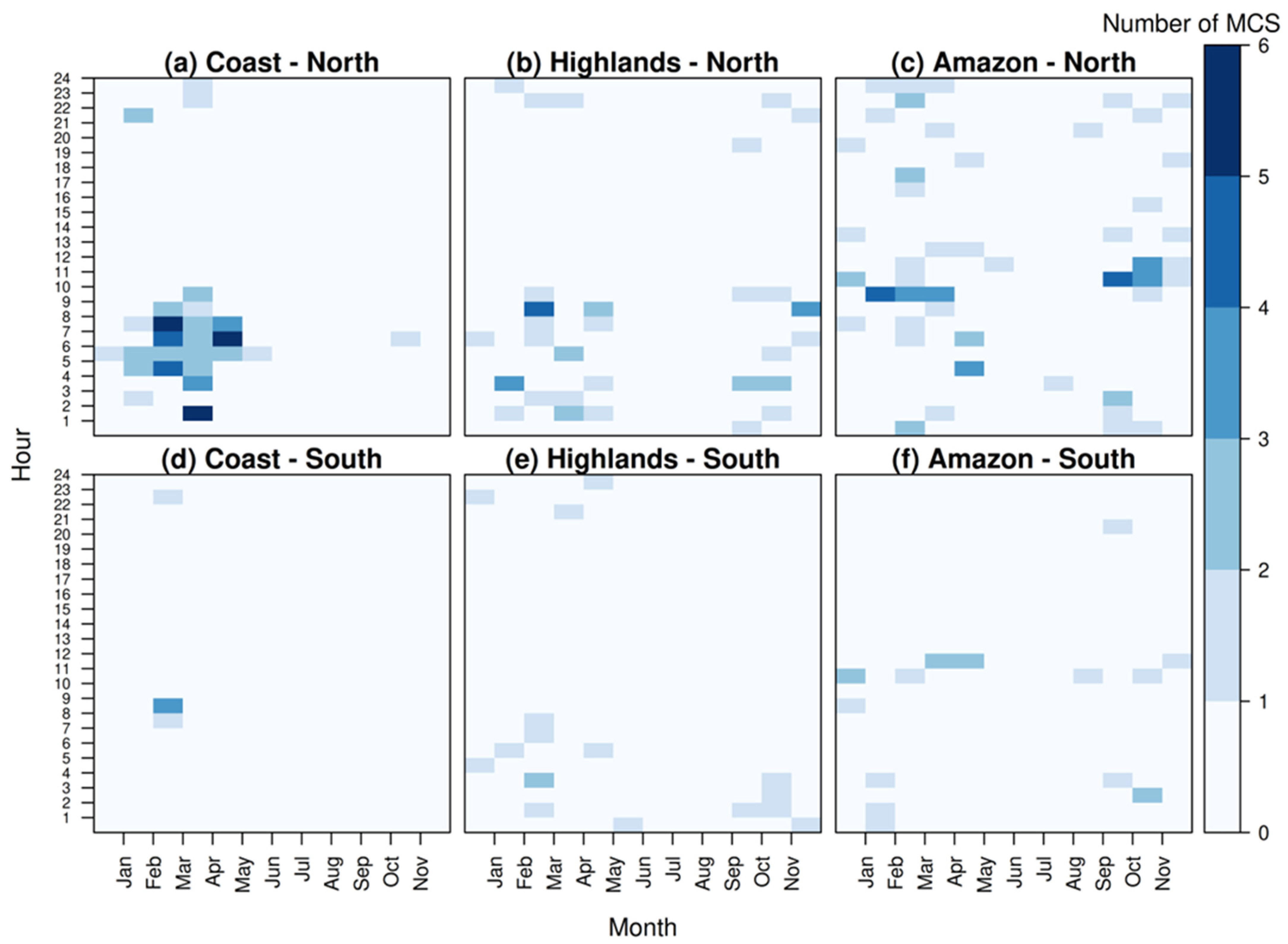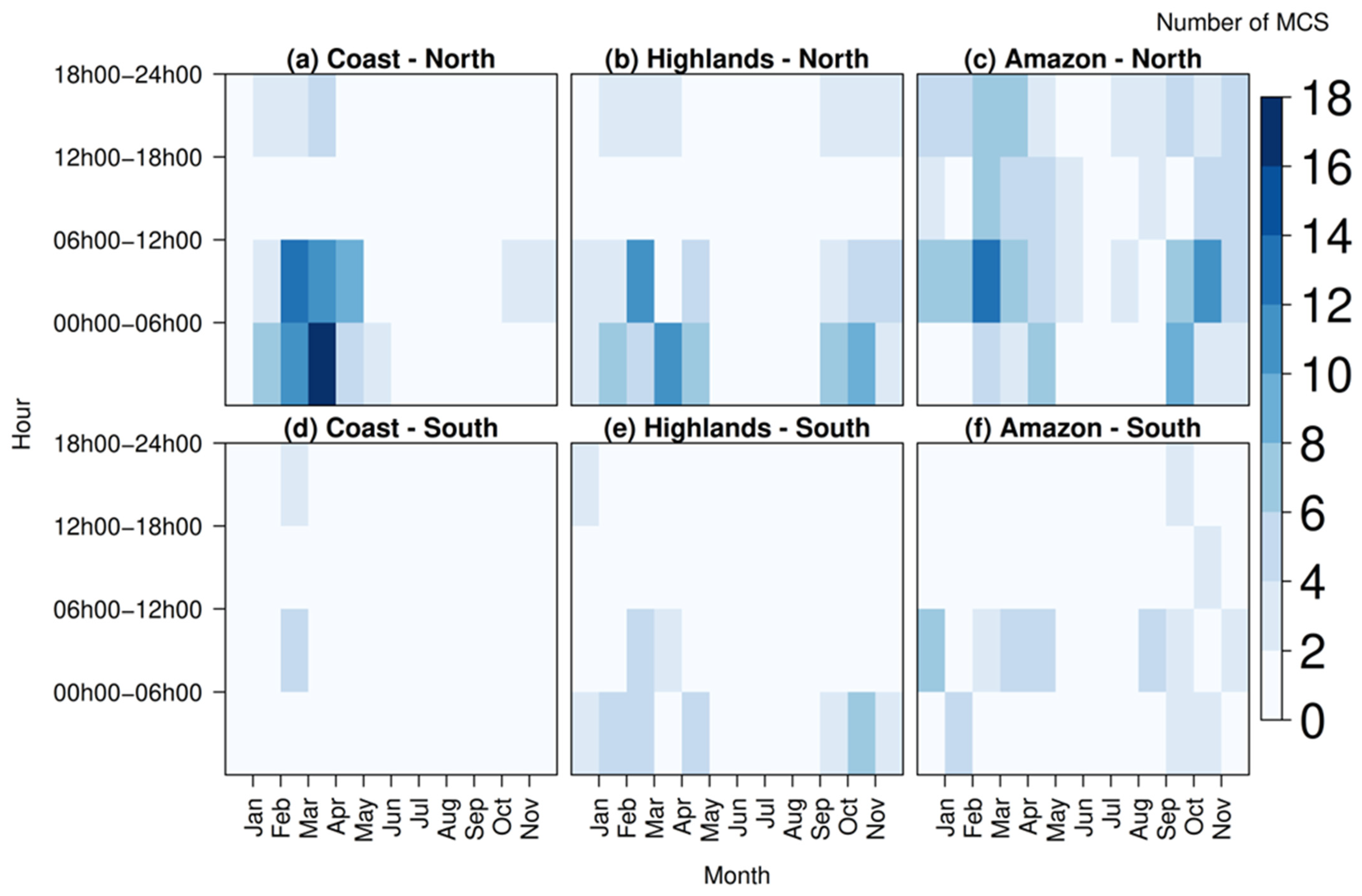 3.1. Spatio-Temporal Analysis Occurrence of MCS over Ecuador