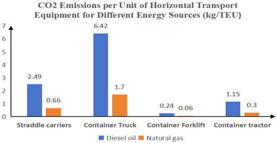 - Budiyanto, M.A.; Huzaifi, M.H.; Sirait, S.J.; Prayoga, P.H.N. Evaluation of CO2 emissions and energy us with different container terminal layouts. Sci. Rep. 2021, 11, 5476. [Google Scholar] [CrossRef] [PubMed]