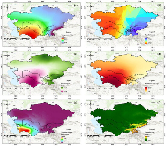 Central Asia, characterized by its continental climate, complex topography, and socio-economic vulnerabilities, has emerged as a hotspot for heatwave intensification. The region’s exposure is exacerbated by rapid urban expansion, land use changes, climate change, and limited adaptive capacity, all of which amplify the risks associated with extreme heat events [5,6,23]. From declining crop yields and water shortages to elevated mortality and morbidity rates [4], the cascading impacts of heatwaves in Central Asia are multifaceted, urgent, and insufficiently mapped. Despite the rising threat, heatwave susceptibility assessments in Central Asia remain sparse, fragmented, and often constrained by the lack of comprehensive and high-resolution spatial data. Conventional studies have largely relied on meteorological station data, static indices, and machine learning models [24,25,26,27,28], which are limited in spatial coverage and unable to capture the dynamic, multi-dimensional nature of heatwave causality. This presents a substantial gap in hazard science, where a robust, spatially explicit, and predictive approach is critical for proactive risk management and mitigation strategies. Recent scholarship has broadened the scope of heatwave research to encompass vulnerability assessment, climate risk modeling, and the operationalization of adaptation strategies in diverse contexts. Case studies highlight adaptation planning in European cities [29,30], and the role of socio-economic capacity in shaping heatwave resilience [31]. Advances in modeling approaches combine machine learning and remote sensing for urban heat vulnerability mapping [32], and employ climate modeling to project future heatwave risks at national and regional scales [33,34,35,36,37]. Together, these works underline the imperative of integrating physical hazard mapping with socio-economic vulnerability metrics to support climate adaptation. A key challenge lies in integrating diverse environmental, climatic, and anthropogenic variables into a unified framework that can identify areas most prone to heatwave occurrence and intensity. Remote sensing technologies offer an effective solution to this challenge [38]. By capturing consistent, repeatable, and wide-area observations, satellite-based data enable the extraction of essential biophysical indicators that drive heatwave dynamics. Variables such as land surface temperature (LST), vegetation indices (e.g., NDVI), soil moisture, built-up density, albedo, and elevation can serve as either evidence layers or causative factors in susceptibility mapping [39,40,41,42,43]. These data sources are particularly valuable in Central Asia, where ground-based observations are often sparse or inaccessible [44]. The ability of remote sensing to characterize environmental gradients at fine resolutions provides a powerful foundation for developing sophisticated and regionally adapted models of heatwave susceptibility [45].