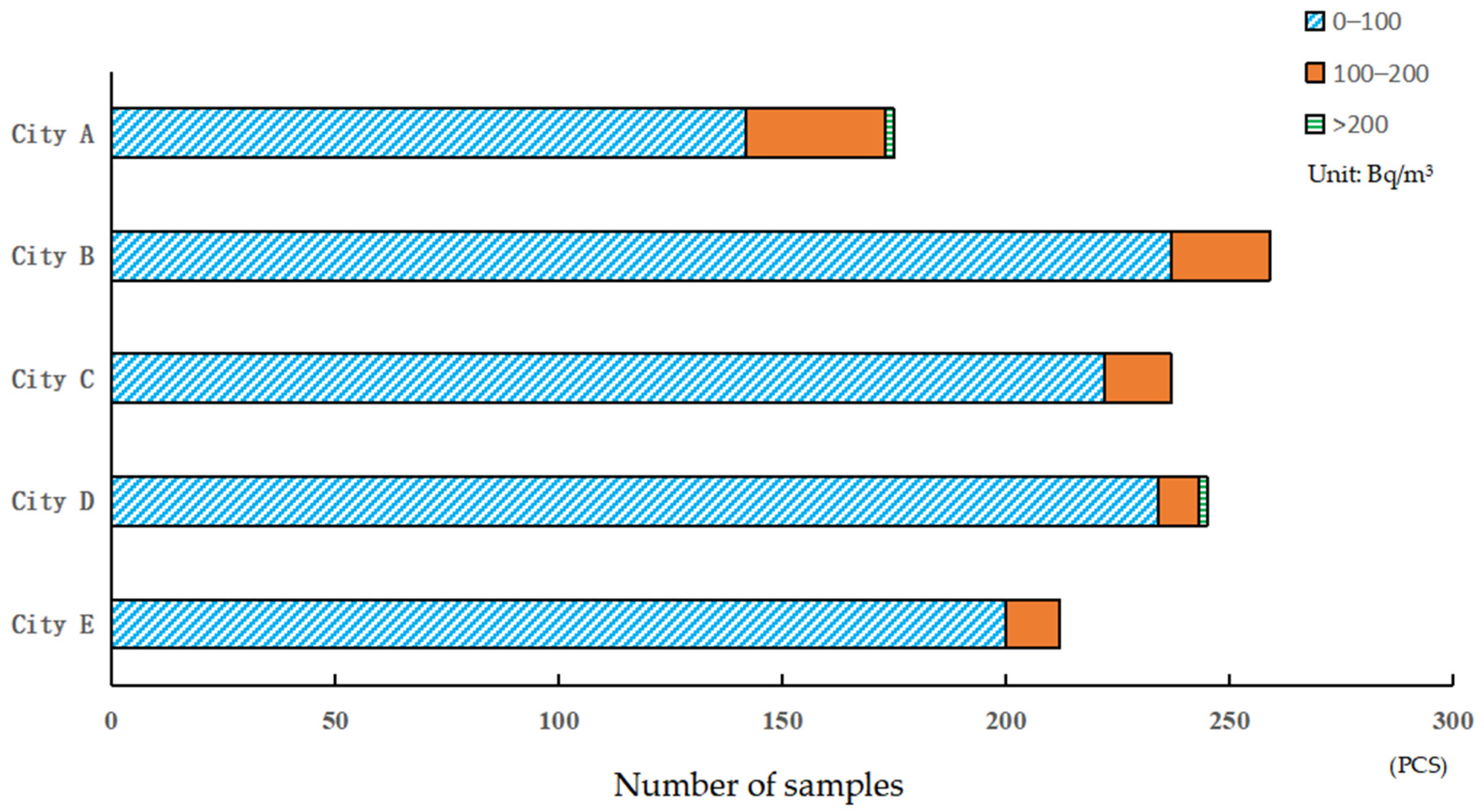 - GB/T 16146-2015; Requirements for Control of Indoor Radon and Its Progeny. General Administration of Quality Supervision, Standardization Administration of the People’s Republic of China: Beijing, China, 2016.