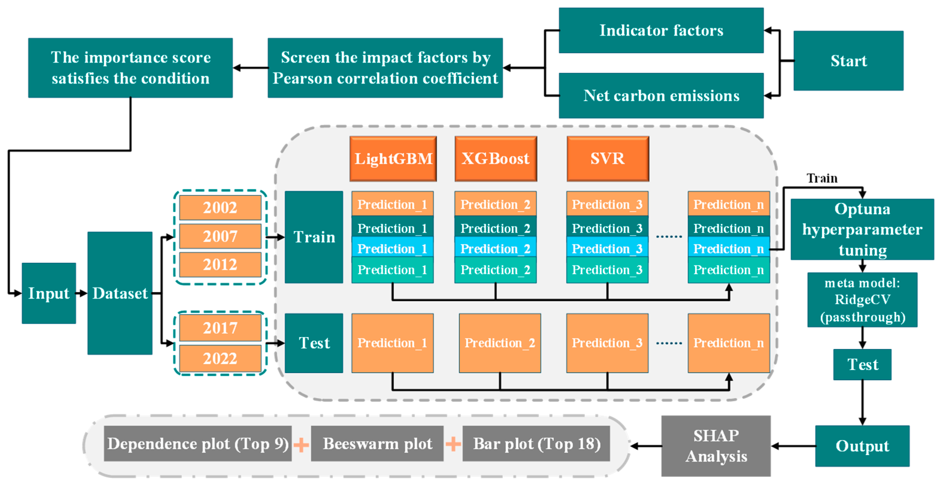 - Hu, S.; Li, S.; Gong, L.; Liu, D.; Wang, Z.; Xu, G. Carbon emissions prediction based on ensemble models: An empirical analysis from China. Environ. Model. Softw. 2025, 188, 106437. [Google Scholar] [CrossRef]