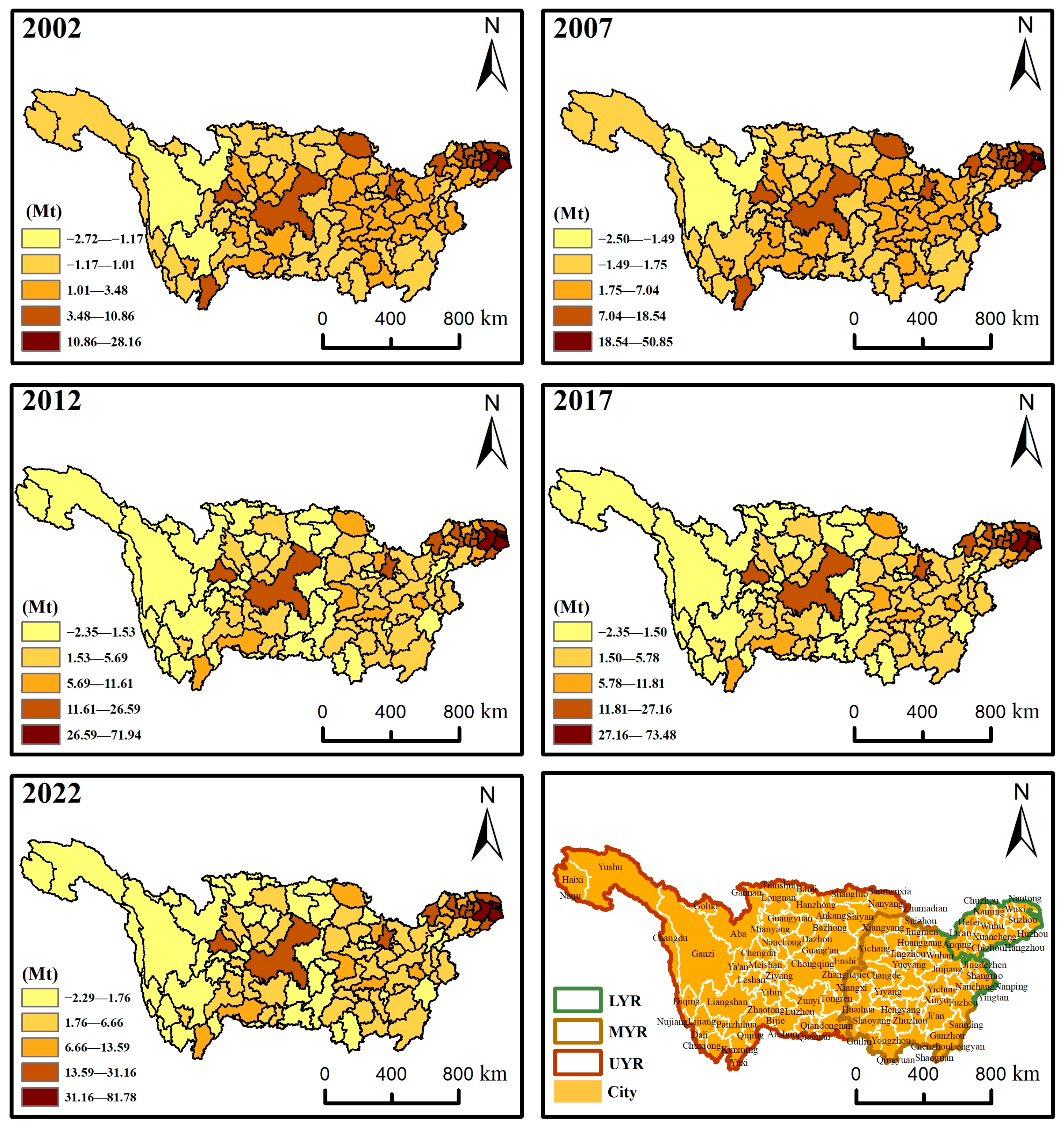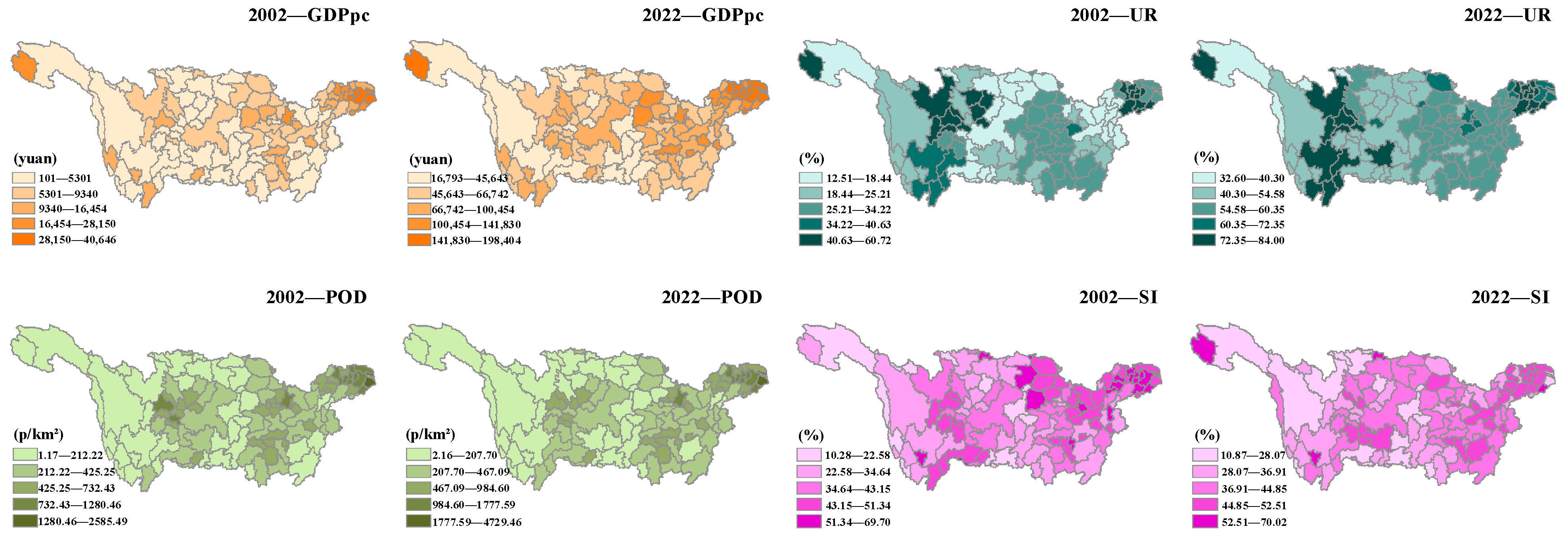 Socioeconomic data | 2002–2022 | China Urban Statistical Yearbook, Statistical Yearbooks of Provinces, Municipalities, and Prefectures | Population density, GDP, urbanization rate, and proportion of industry structure |