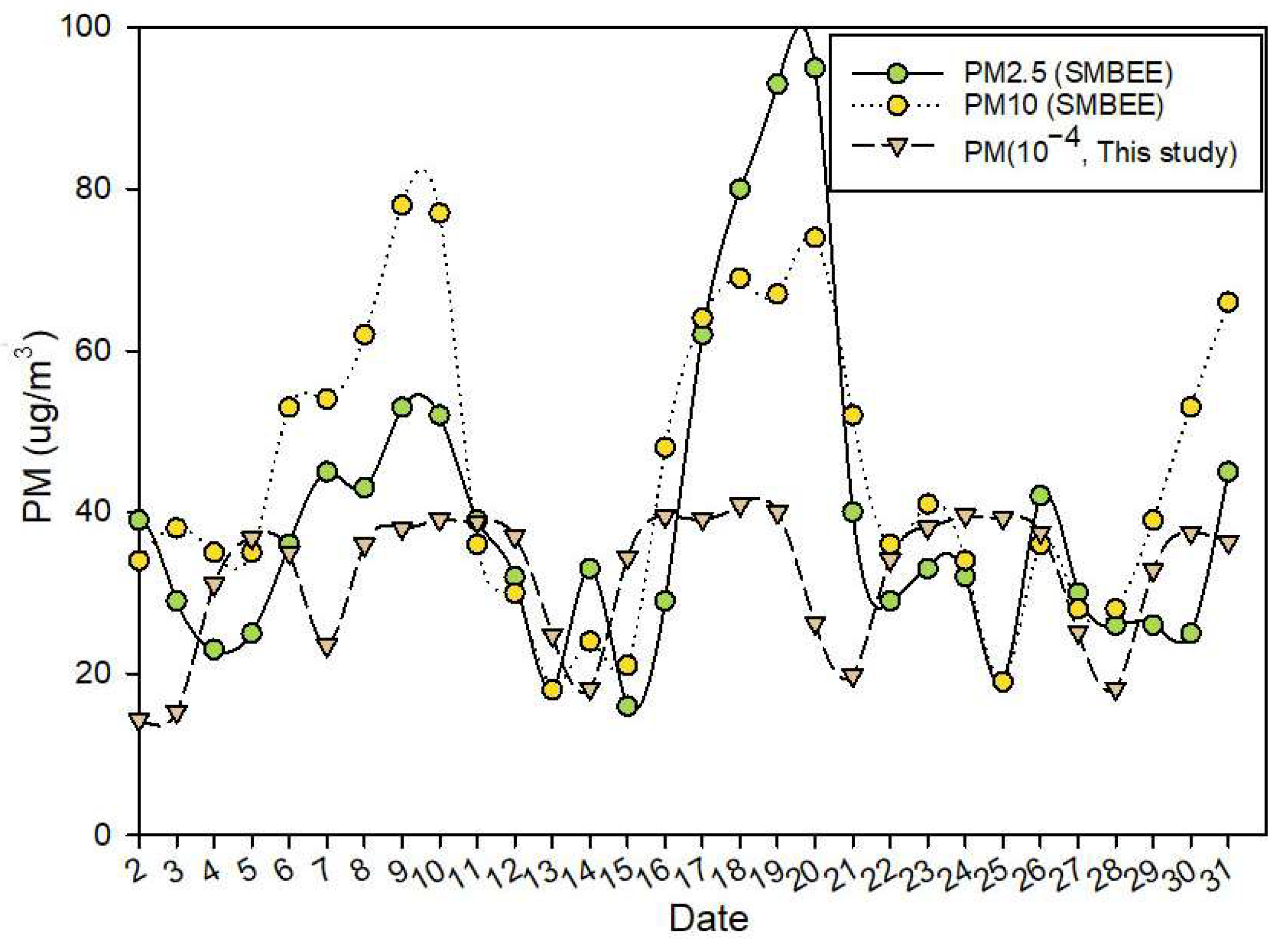 In addition, daily PM2.5 and PM10 sub-index values for May 2023 were collected from the Shanghai Municipal Bureau of Ecology and Environment (SMBEE). These observational data were qualitatively compared with the estimated daily emissions from HDDTs in this study, as shown in