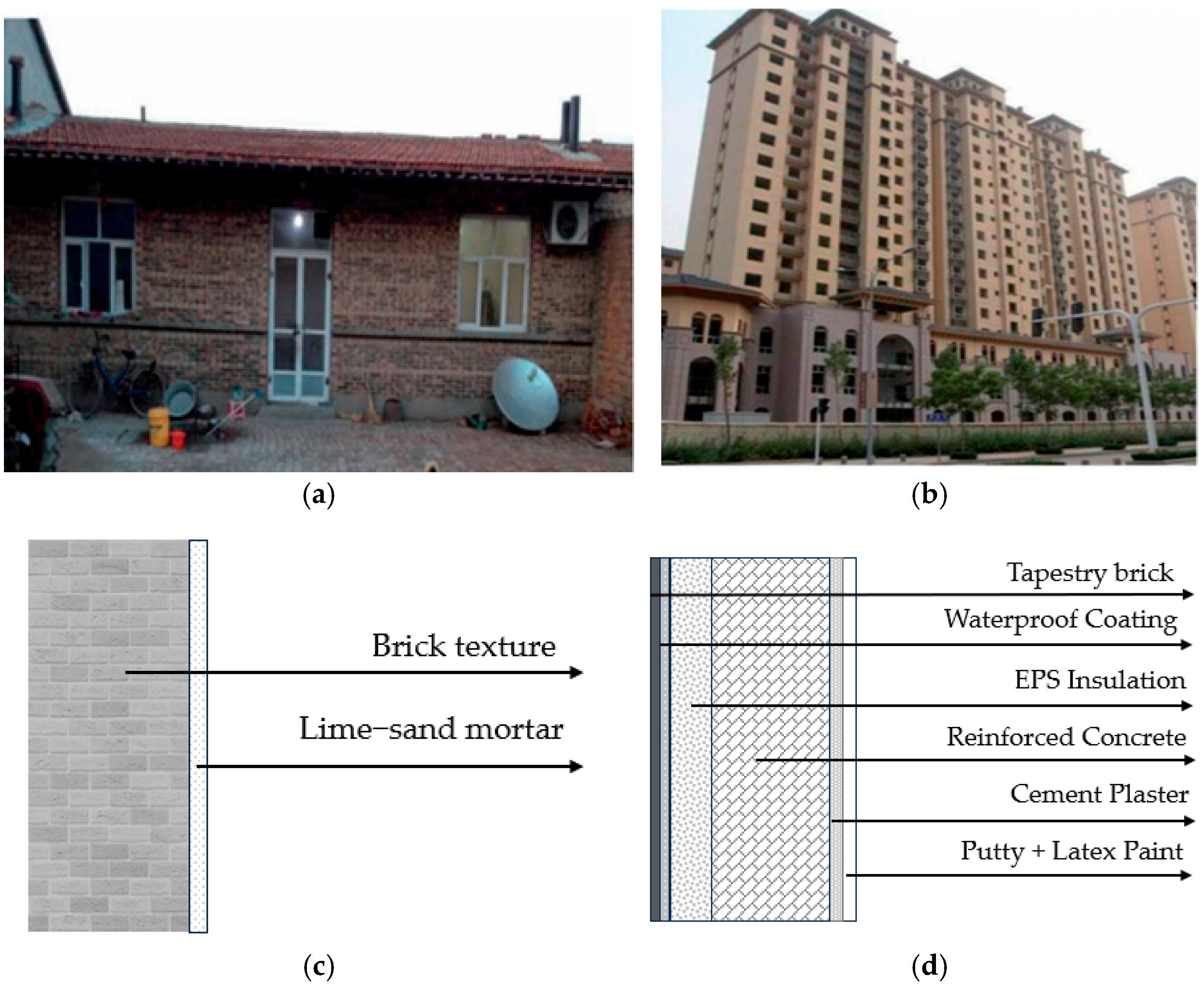 29]. The seasonal average outdoor humidity of the investigated areas in spring, summer, autumn, and winter is 52%, 72%, 65%, and 57%, respectively. The seasonal average outdoor air temperature is 13.4 °C in spring, 25.7 °C in summer, 13.6 °C in autumn, and −1.7 °C in winter [