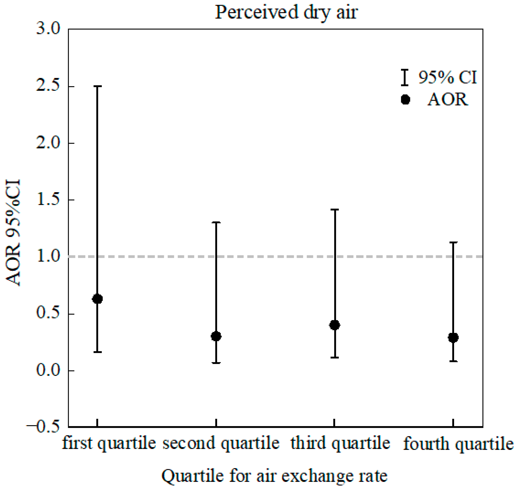 Table 4. With an increase in indoor air humidity and the air exchange rate, the prevalence of perceived dry air decreased. The associations between physical parameters and perceived dry air are shown in