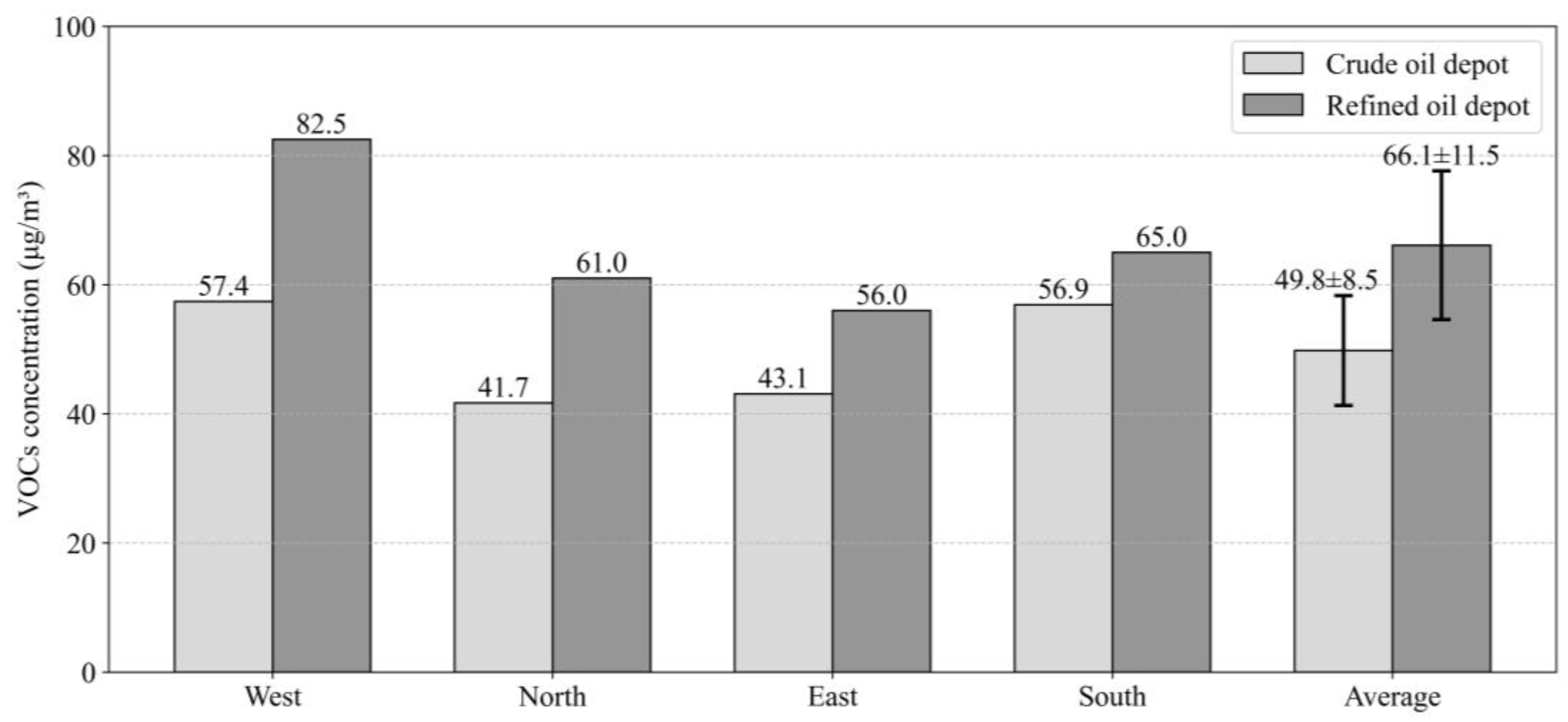 3.1. Emission Characteristics of VOCs in Oil Depots