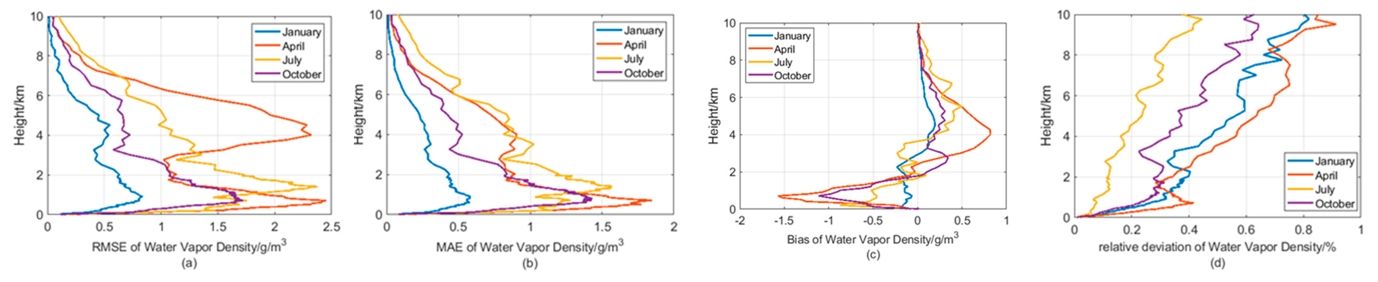 3.1.2. Analysis of Retrieval Results of Water Vapor Density