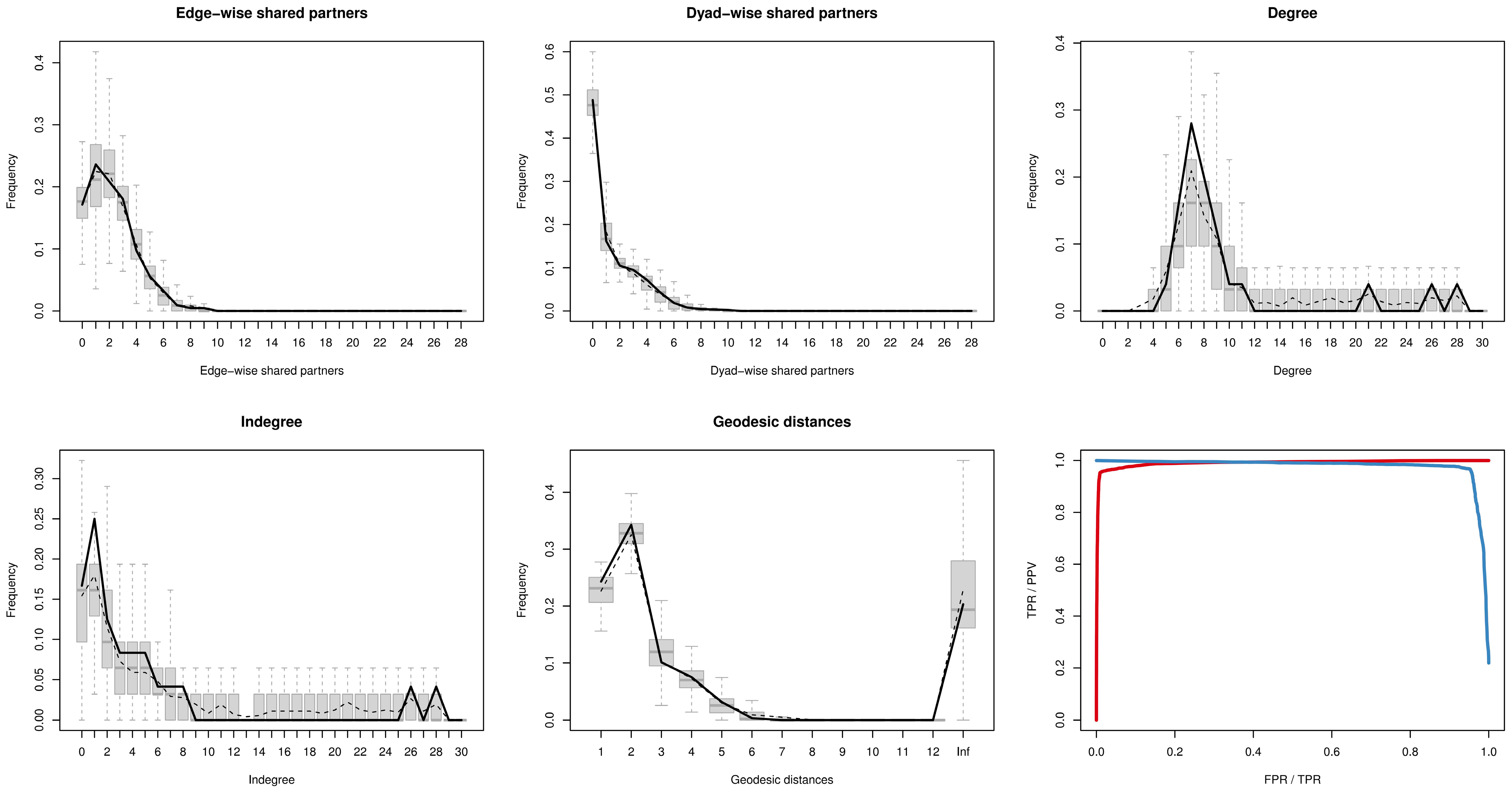 Exogenous network covariates | D[0,500] | 0.058 *** | 0.090 *** | 0.059 * | 0.005 | |