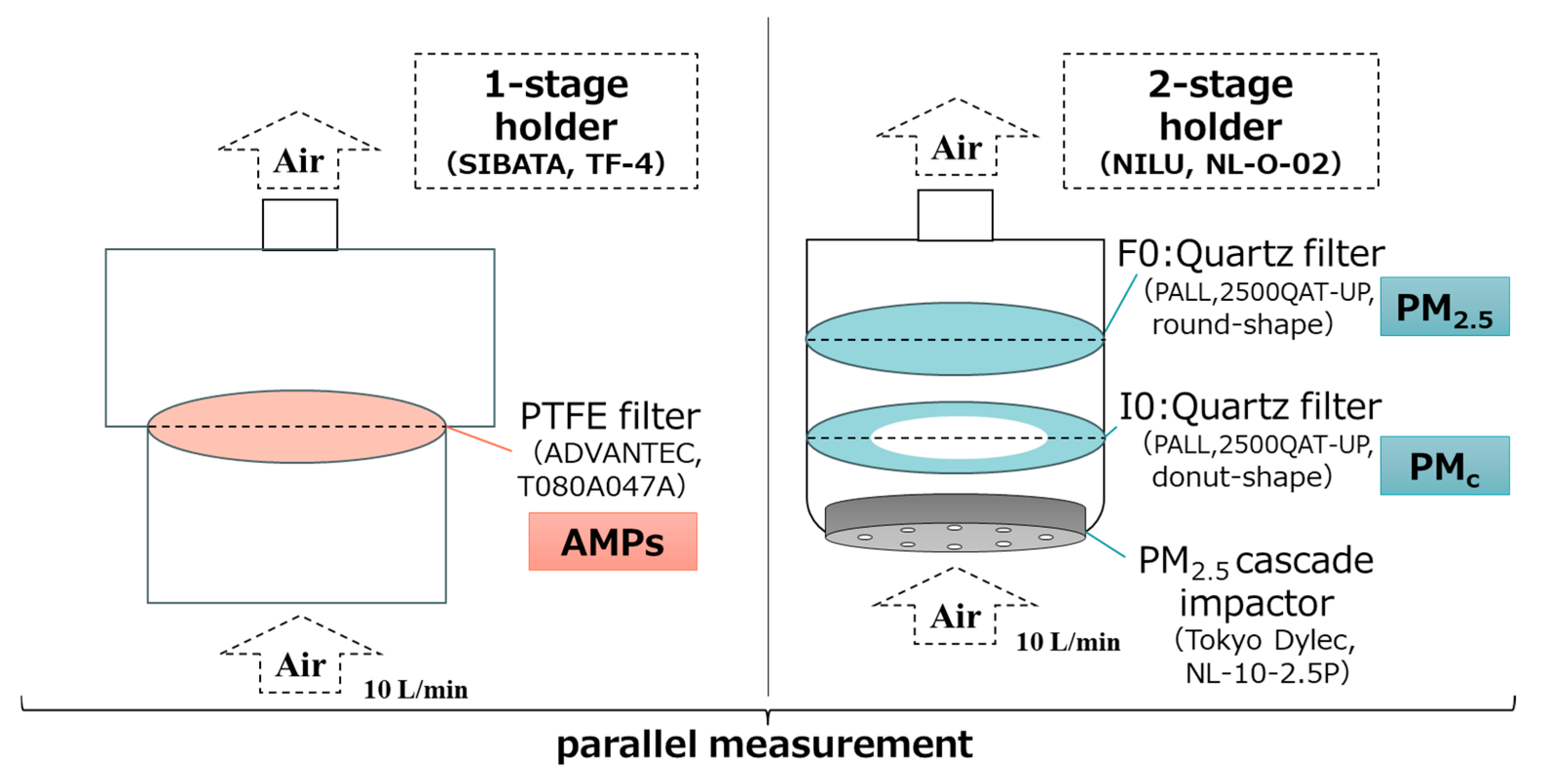 Figure 2. A schematic diagram illustrating the filter papers and their holders utilized for parallel measurements, as well as the substances intended for collection, respectively. The definition of PMc was delineated in Section 2.1.2.