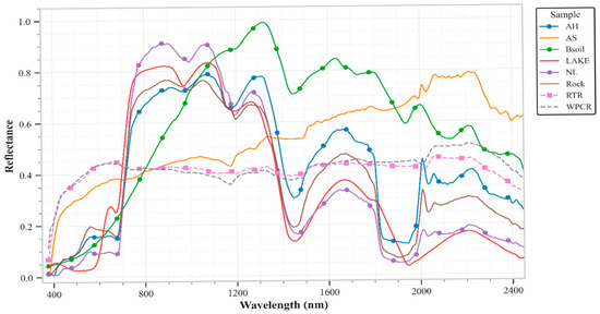 - Kokaly, R.F.; Clark, R.N.; Swayze, G.A.; Livo, K.E.; Hoefen, T.M.; Pearson, N.C.; Wise, R.A.; Benzel, W.; Lowers, H.A.; Driscoll, R.L. USGS Spectral Library Version 7; US Geological Survey: Reston, VA, USA, 2017. [Google Scholar]