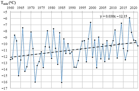 Linear trend of minimum annual temperature series (Tmin) in Türkiye.