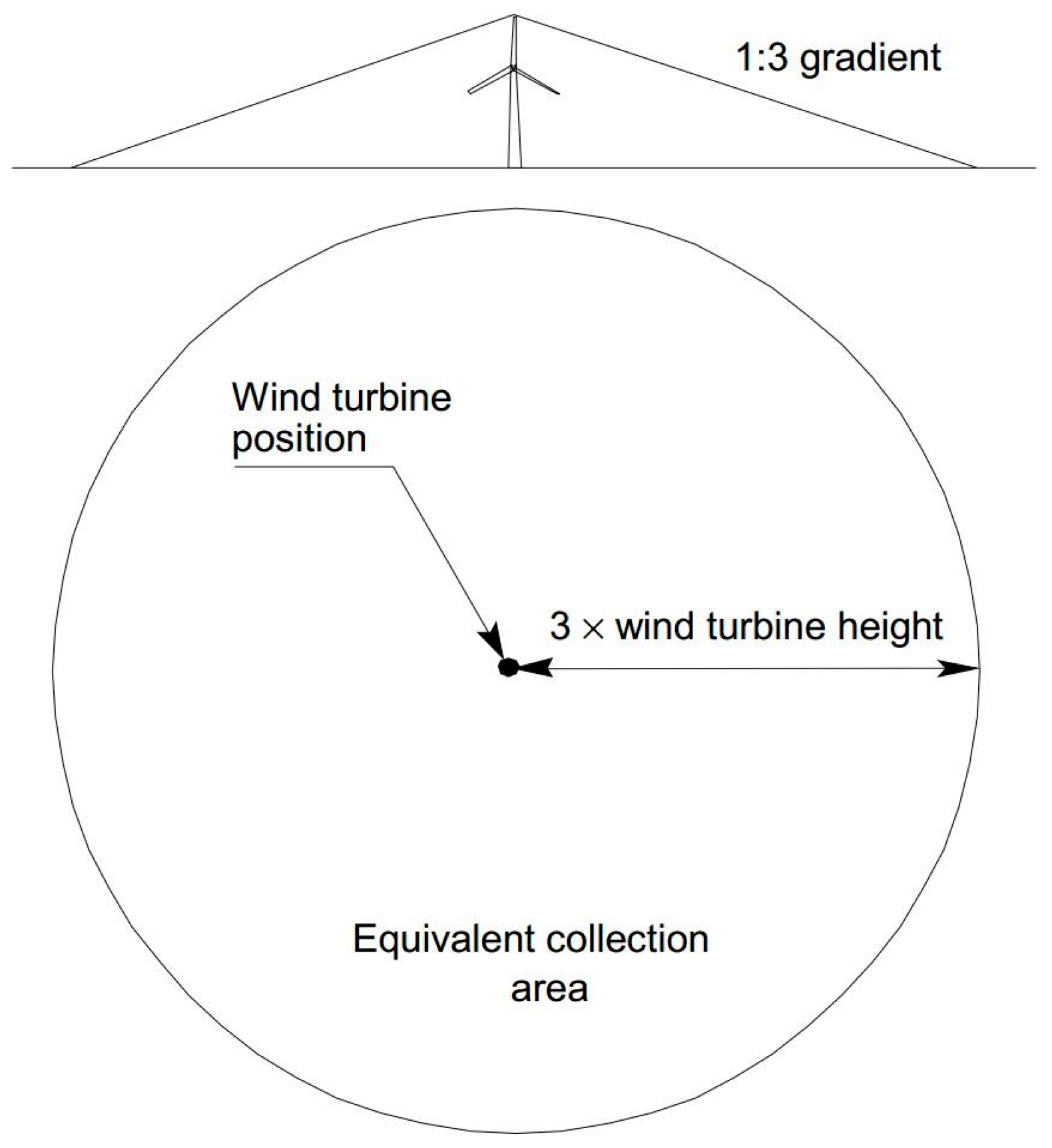 The equivalent collection area calculation method is provided in IEC 61400-24-2019.