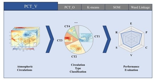 4]. Circulation Type Classification (CTC) divides the circulation patterns into several Circulation Types (CTs) with significant differences, helping researchers identify key features of circulation patterns associated with weather events and climate change. CTC methods are typically categorized into three categories: subjective classification, objective classification, and hybrid classification [