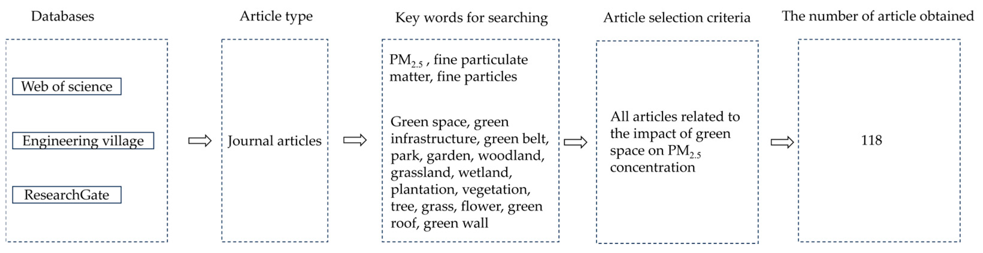 - Comprehensively review articles related to the effect of green space on PM2.5 concentrations from different scales;