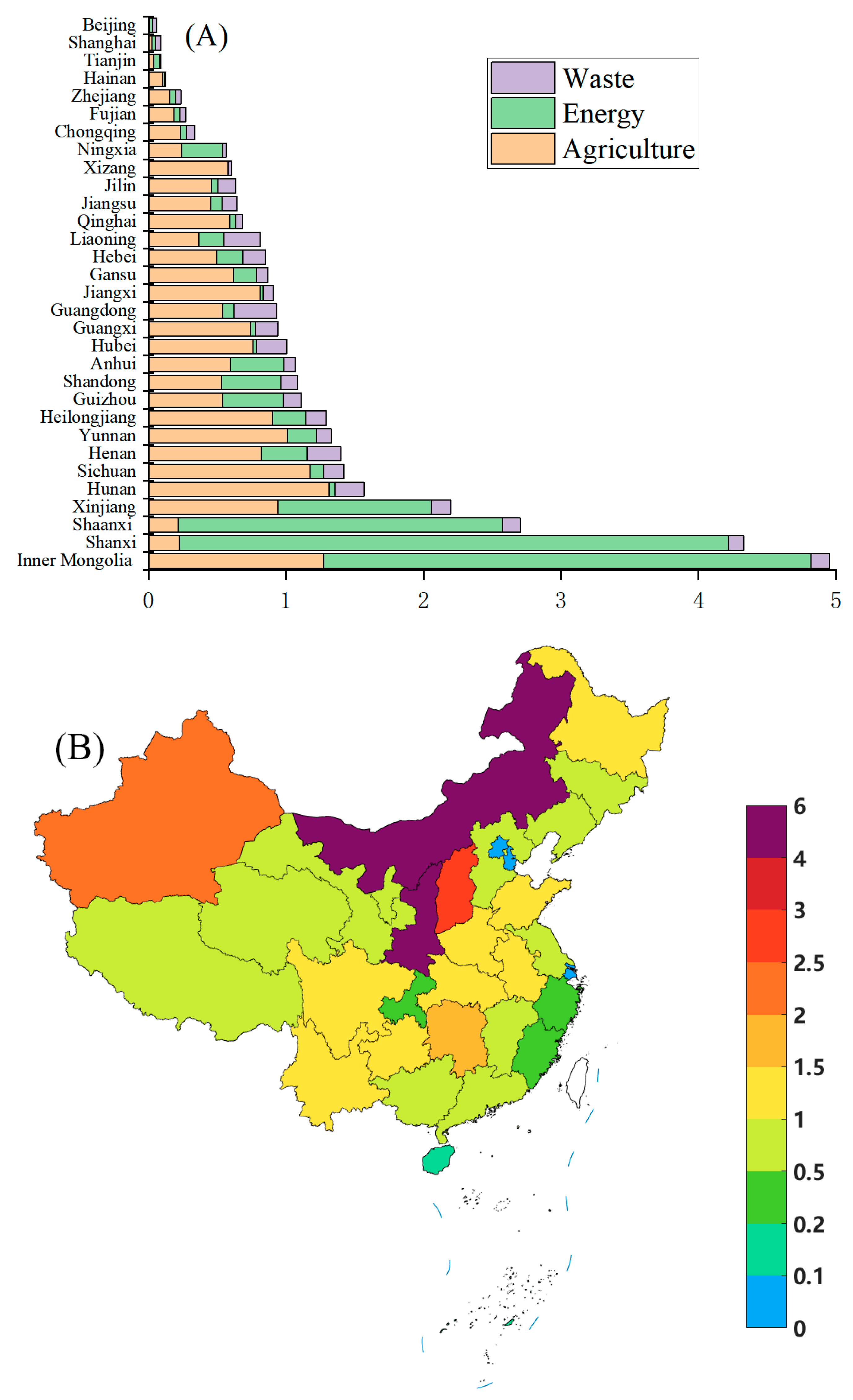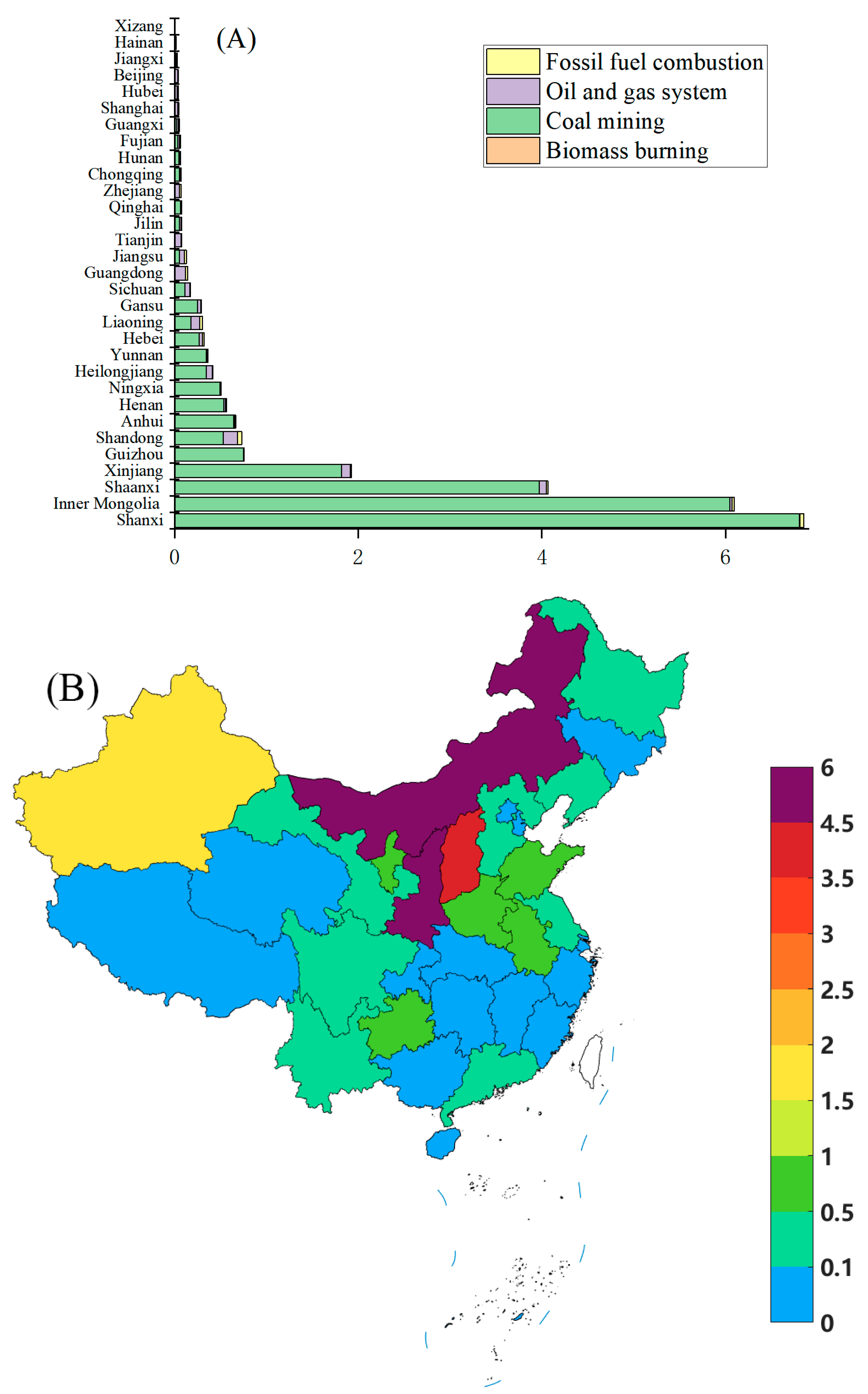 4.4. Envisaging China’s Plan to Curtail CH4 Emissions