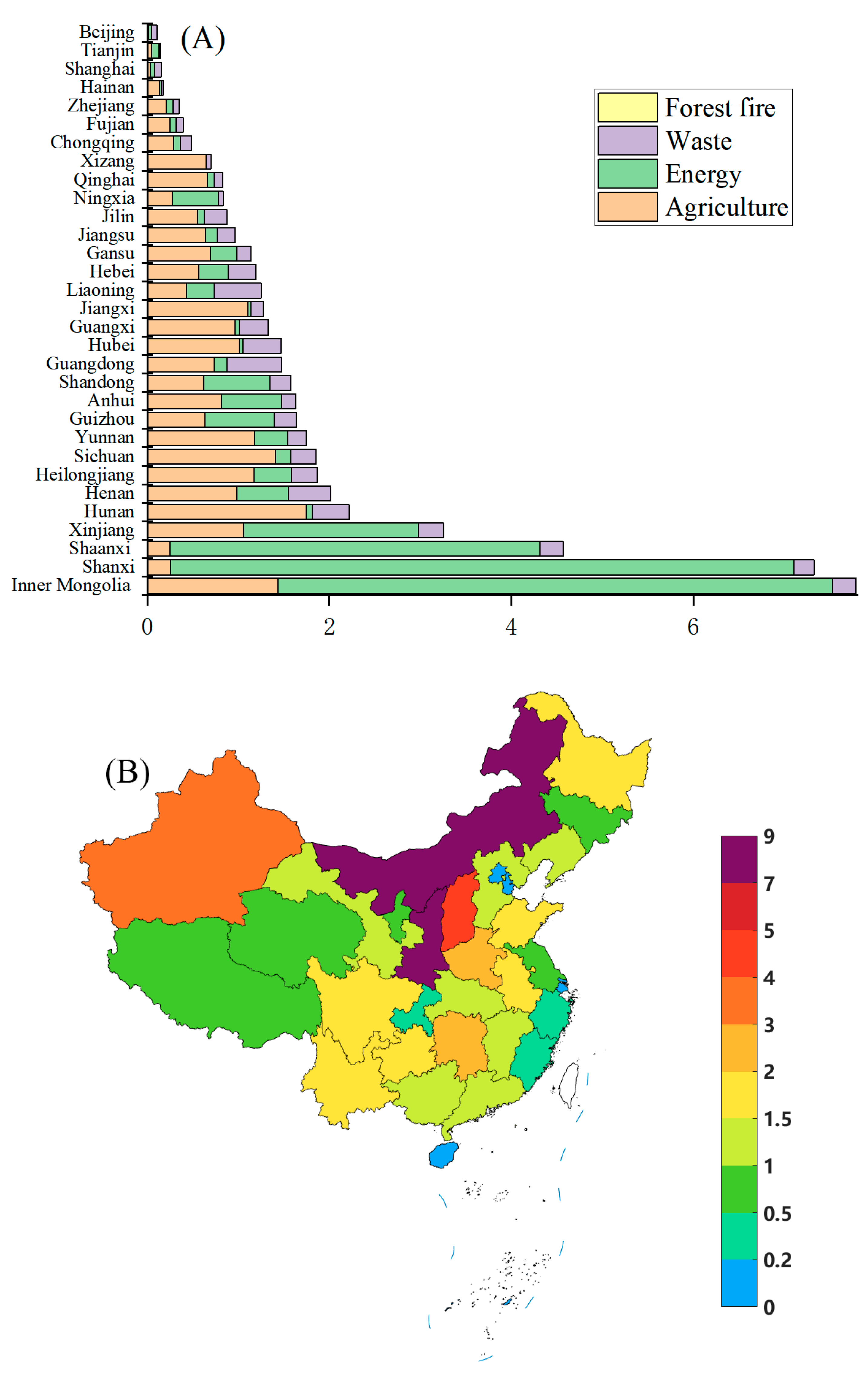 - Khanna, N.; Lin, J.; Liu, X.; Wang, W. An assessment of China’s methane mitigation potential and costs and uncertainties through 2060. Nat. Commun. 2024, 15, 9694. [Google Scholar] [CrossRef]