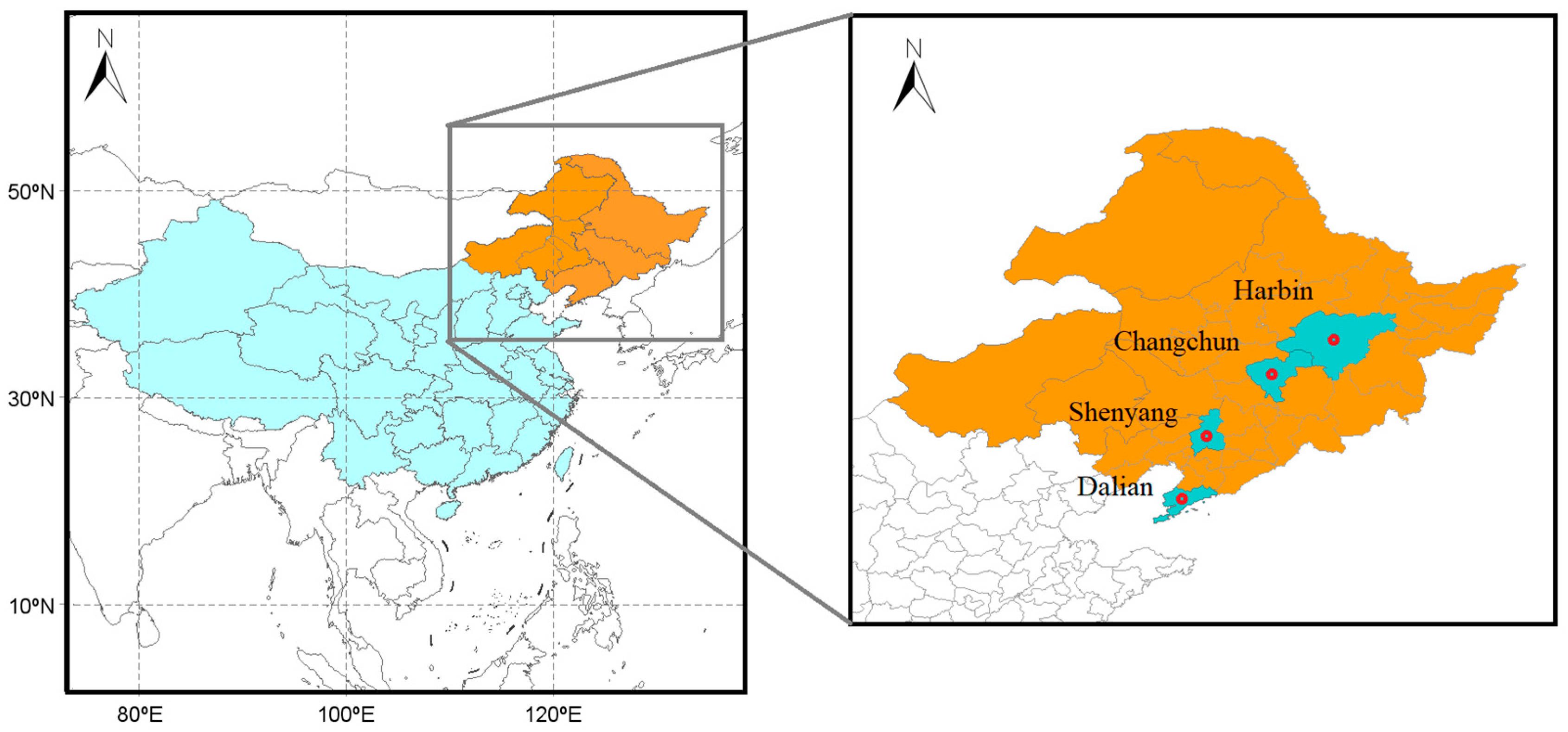 - Du, M.; Liu, W.; Hao, Y. Spatial Correlation of Air Pollution and Its Causes in Northeast China. Int. J. Environ. Res. Public Health 2021, 18, 10619. [Google Scholar] [CrossRef]