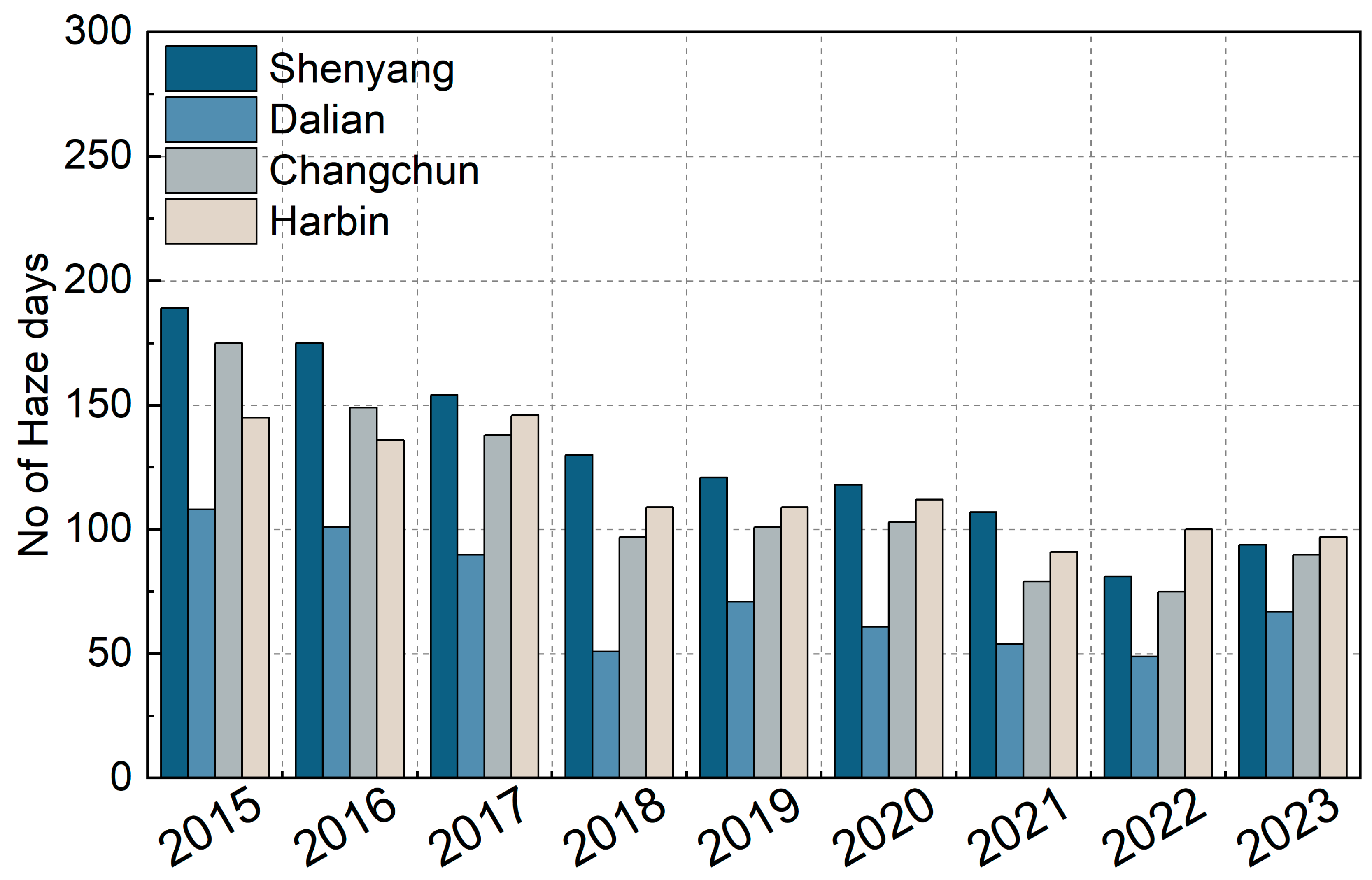- Yang, M.; Wang, W.; Li, Y.; Du, Y.; Tian, F. Revealing the Impact of Socio-Economic Metrics on the Air Quality on Northeast China Using Multivariate Statistical Analysis. Pol. J. Environ. Stud. 2022, 31, 3373–3385. [Google Scholar] [CrossRef]