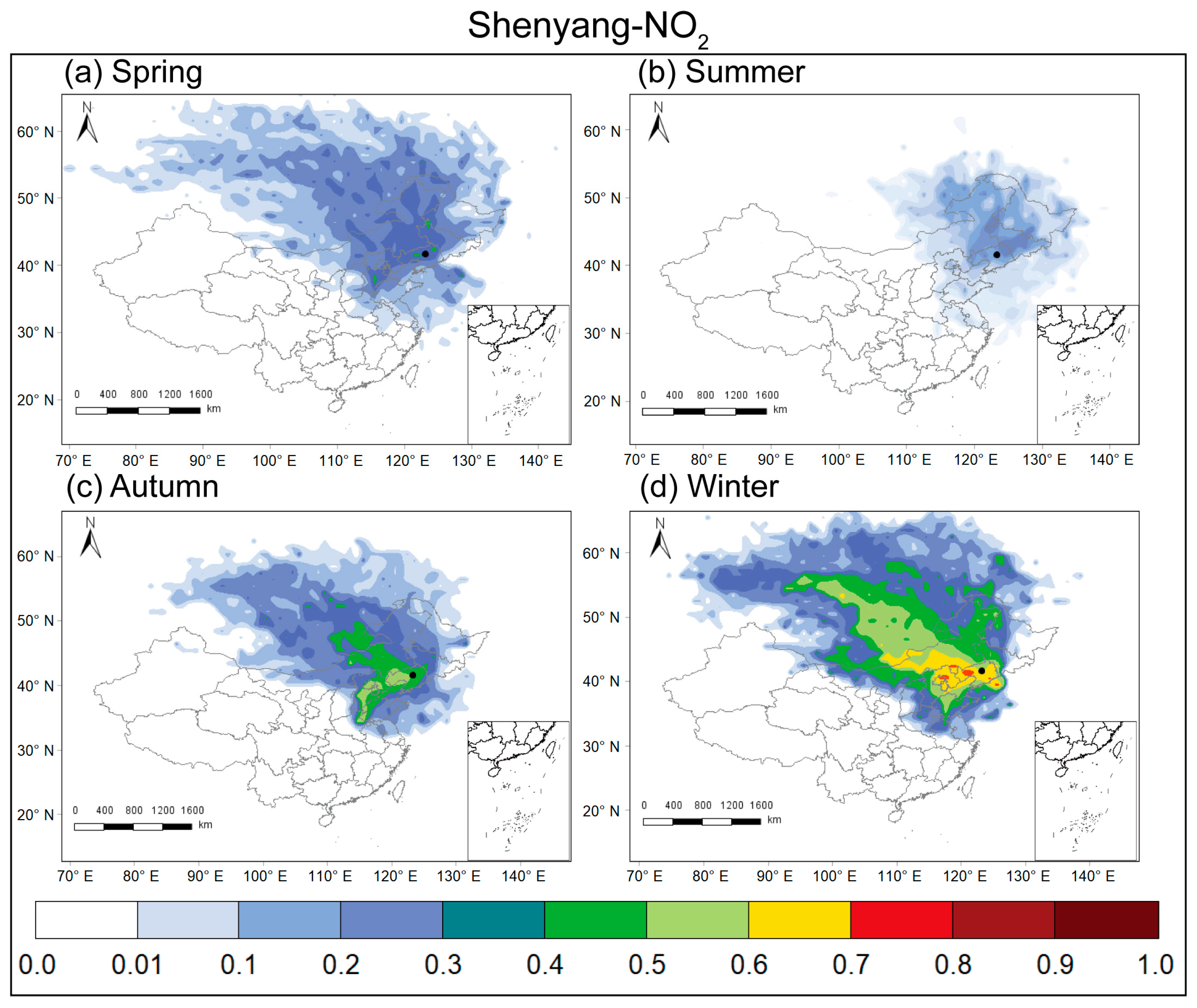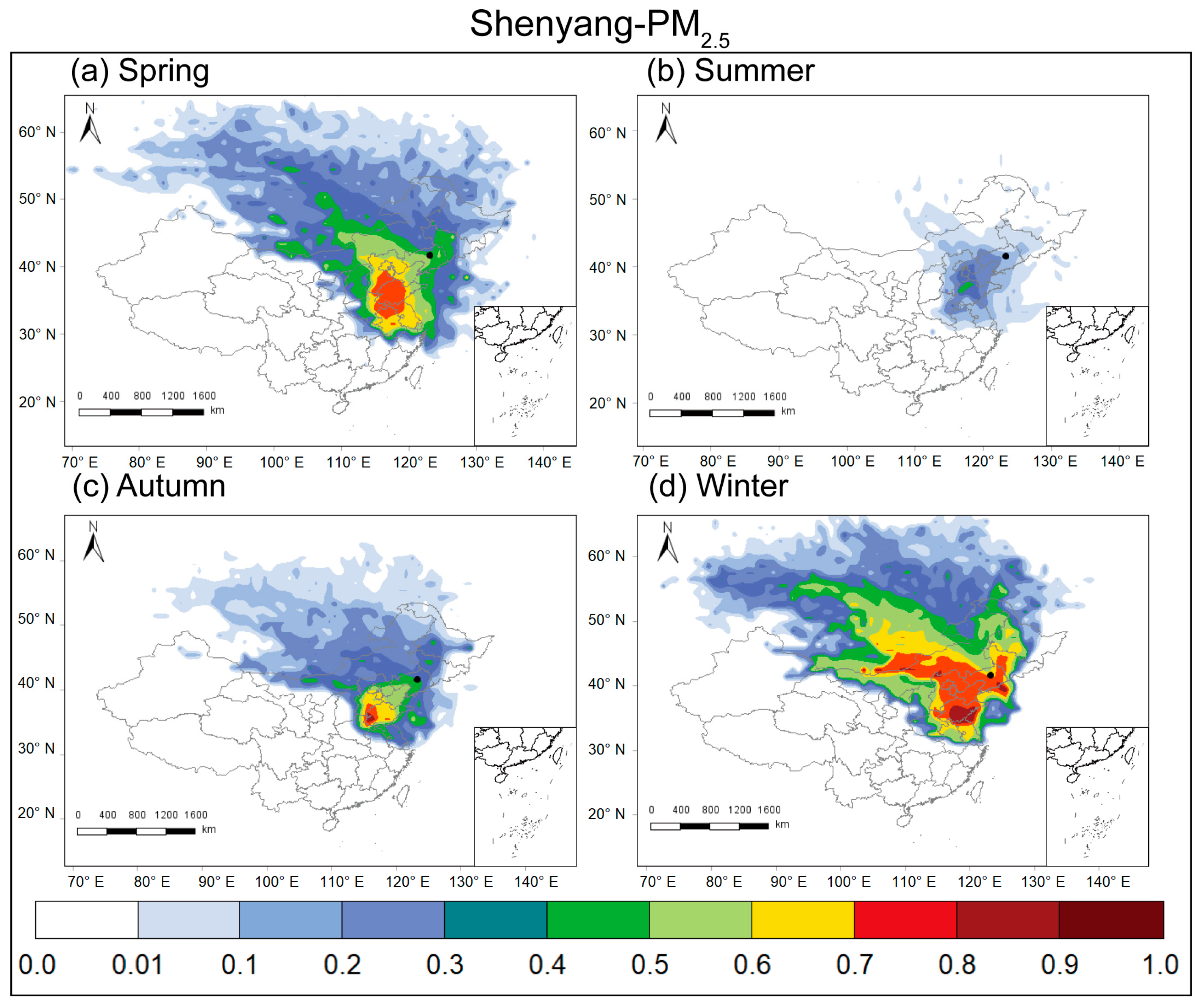 - Ma, Y.; Liu, Q.; Bian, Y.; Feng, L.; Zhao, D.; Wang, S.; Zhao, H.; Gao, K.; Xu, Z. Analysis of transport path and source distribution of winter air pollution in Shenyang. Open Geosci. 2021, 13, 1105–1117. [Google Scholar] [CrossRef]