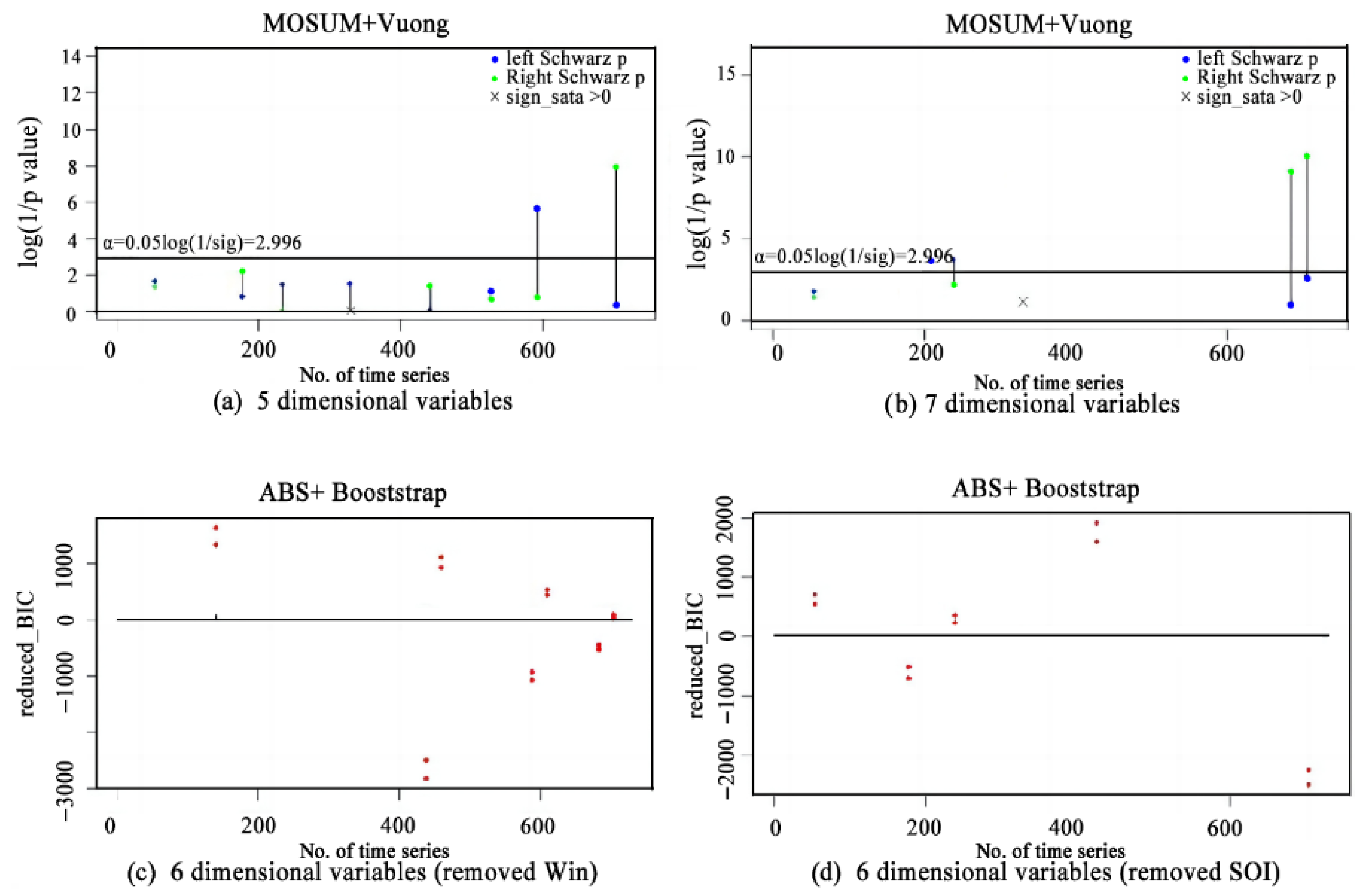 4.3. Detection of Change Point for Testing the Non-Stationarity of Multivariables