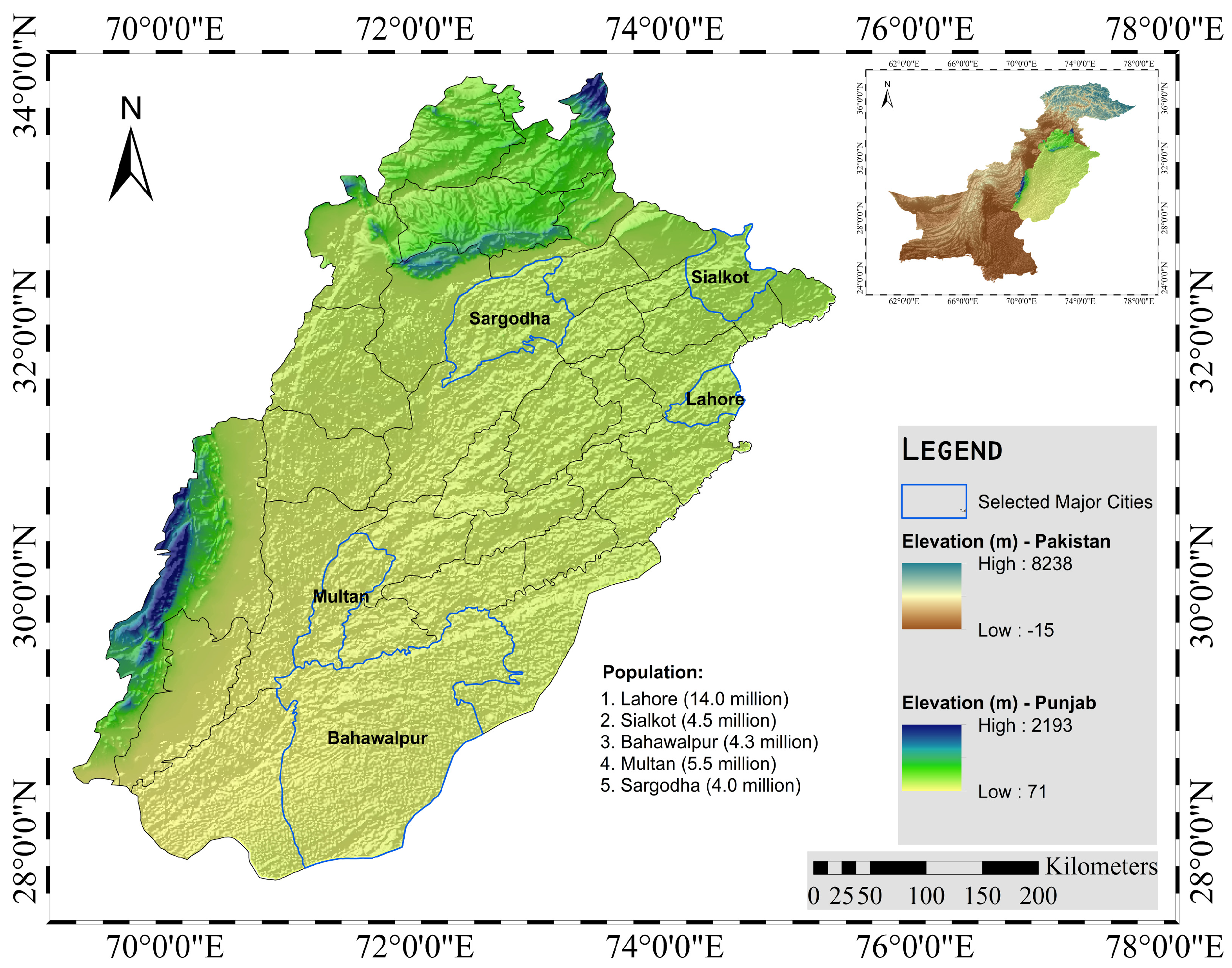 - Rainfall intensities increased most in Multan, followed by Bahawalpur, Sargodha, Lahore, and Sialkot, with critical implications for infrastructure design [76]. Historical rainfall intensities show typical trends for Punjab’s major urban centers, with Lahore being the wettest and Bahawalpur the driest [76].