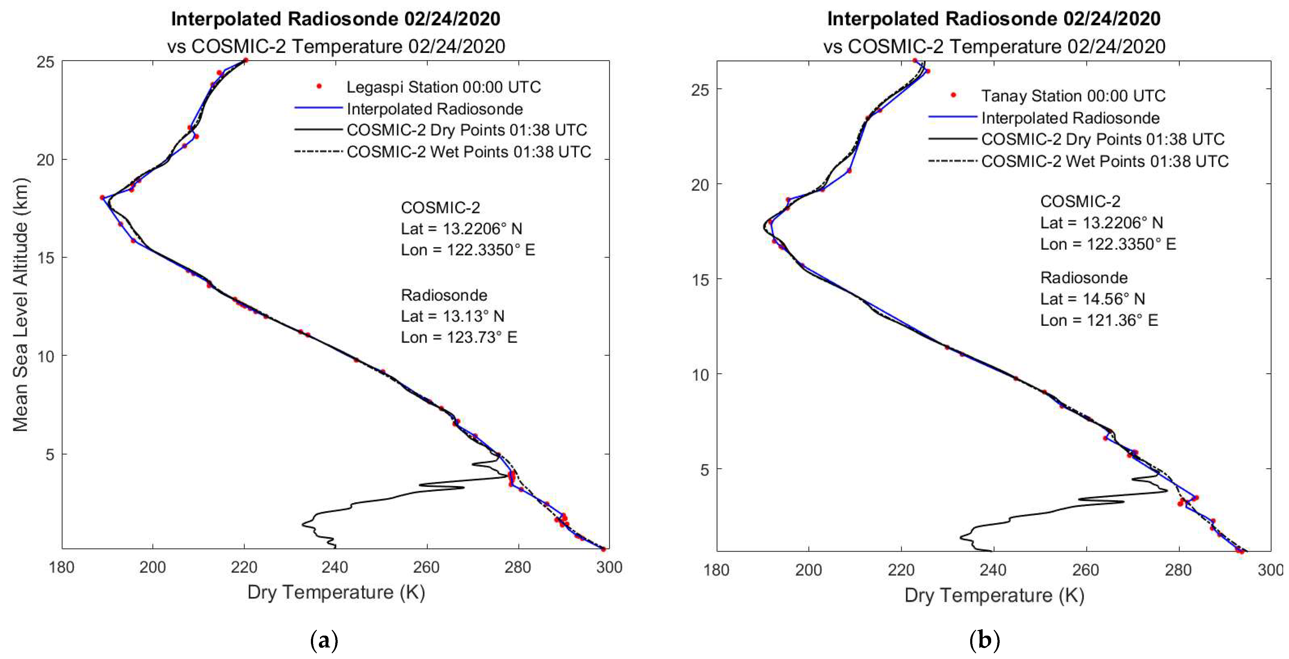 - Eugenio, R.G.; Macalalad, E.P. Monthly Observations of Cold-Point Tropopause Temperature and Height for 2008 in the Philippines Using COSMIC GPS Radio Occultations. J. Phys. Conf. Ser. 2021, 1936, 012019. [Google Scholar] [CrossRef]