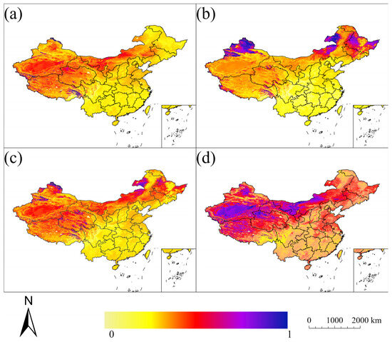 The three environmental drivers exhibited heterogeneous influences. NDVI showed a generally negative correlation with albedo, particularly strong in summer and autumn, highlighting the widespread “darkening effect” of vegetation greening [35]. Temperature displayed region- and season-dependent relationships: in high-latitude and snow-dominated areas, warming was linked to albedo reduction via snow/ice retreat [36], while in arid and semi-arid zones, warming occasionally corresponded to albedo increases due to soil desiccation and surface brightening [37]. Precipitation effects were more spatially and seasonally complex: in drylands, higher rainfall promoted vegetation growth and thus albedo decline [38], whereas in humid southern regions, hydrological conditions, cropland cycles, and atmospheric effects (e.g., aerosols, cloud cover) modulated the relationship in more variable ways [39]. Overall, NDVI emerged as the most consistent explanatory factor at the national scale, while temperature dominated in cold and snow-covered regions and precipitation exhibited the greatest spatial–seasonal heterogeneity. These results demonstrate how a GTWR framework reveals time-varying signs and magnitudes of drivers that global regressions would mask.