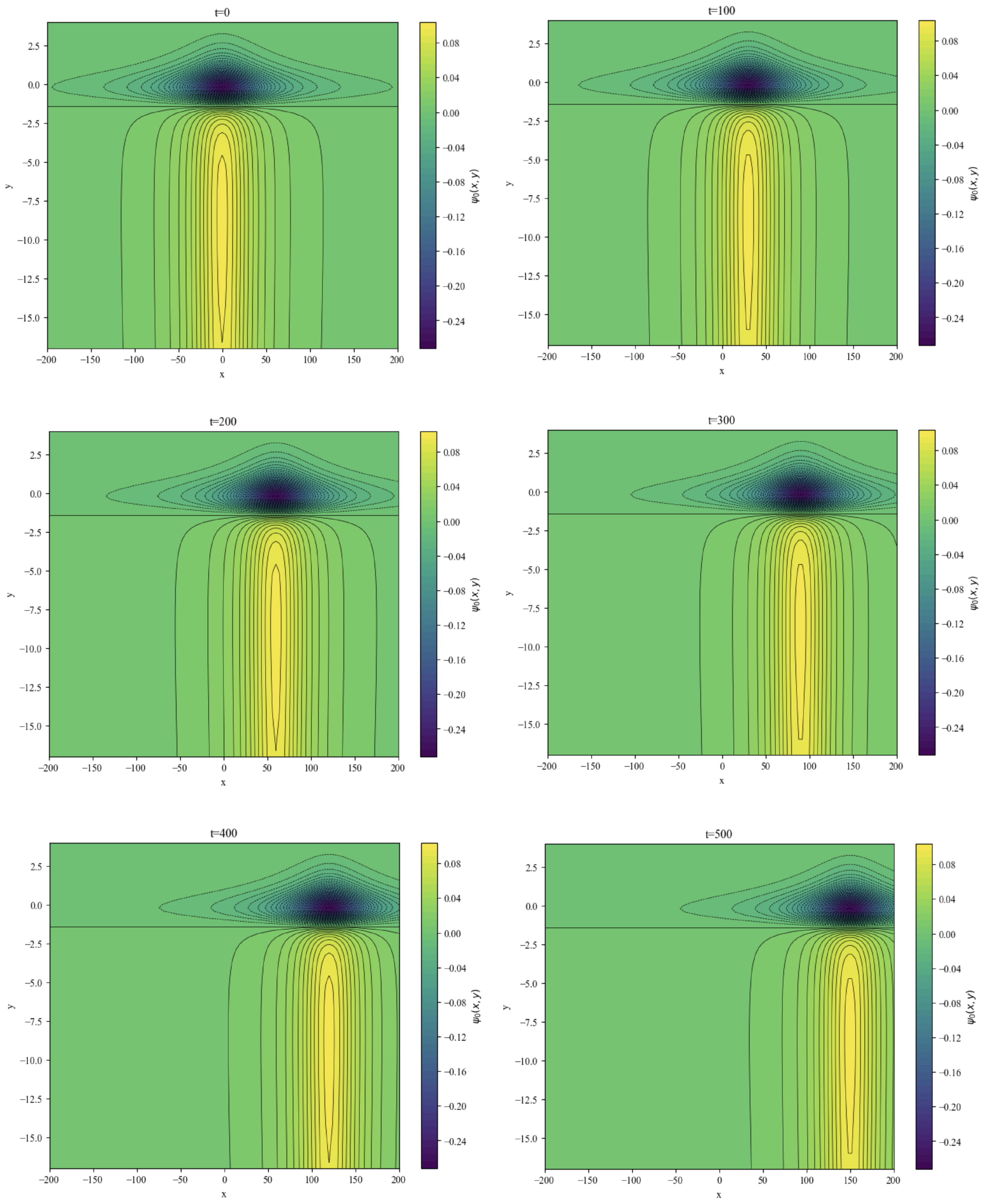 22] further studied the dynamics of Rossby algebraic solitary waves induced by large-scale topography, confirming that large-scale topographic features significantly modify the amplitude and propagation modes of these waves.