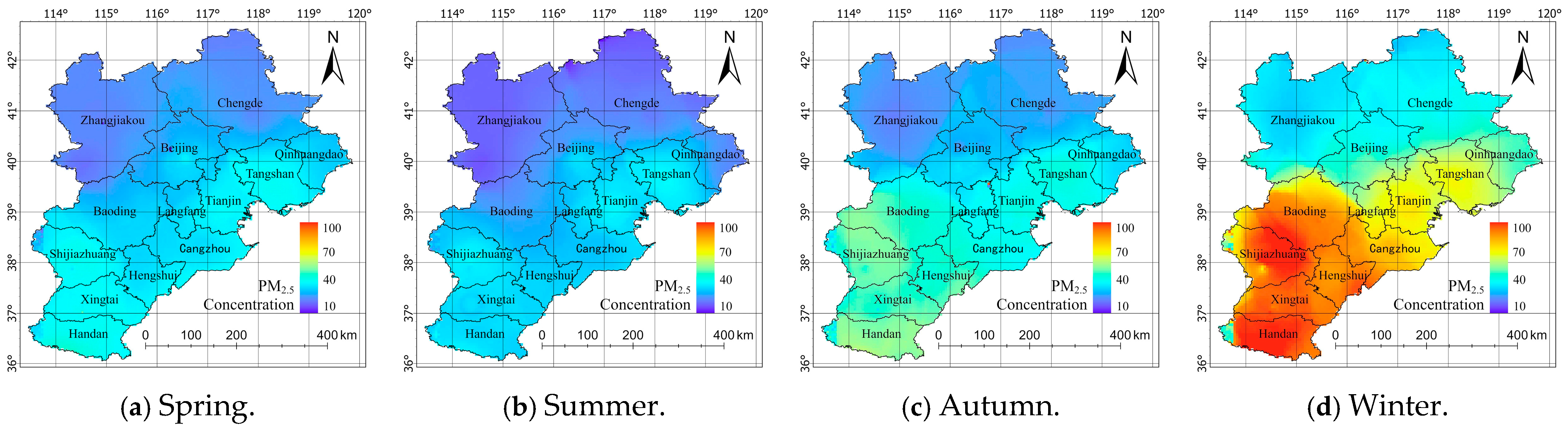 17], there is still a lack of research focusing on the Beijing–Tianjin–Hebei (BTH) region and leveraging higher-resolution fused AOD data while fully accounting for both nonlinear relationships and spatiotemporal dependencies in PM