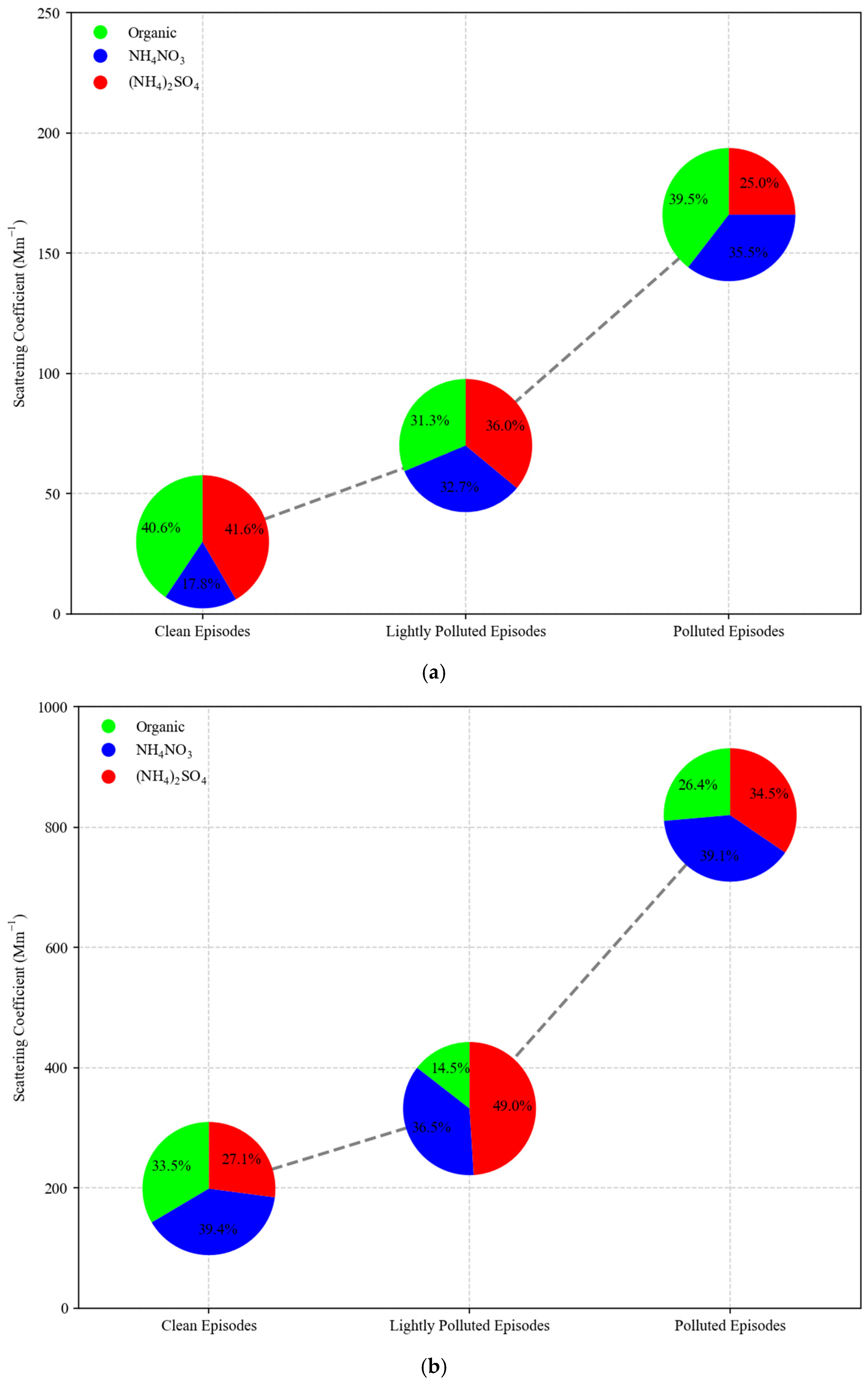3.4. Variations in the Scattering Coefficient of Each Component in Pollution Episode