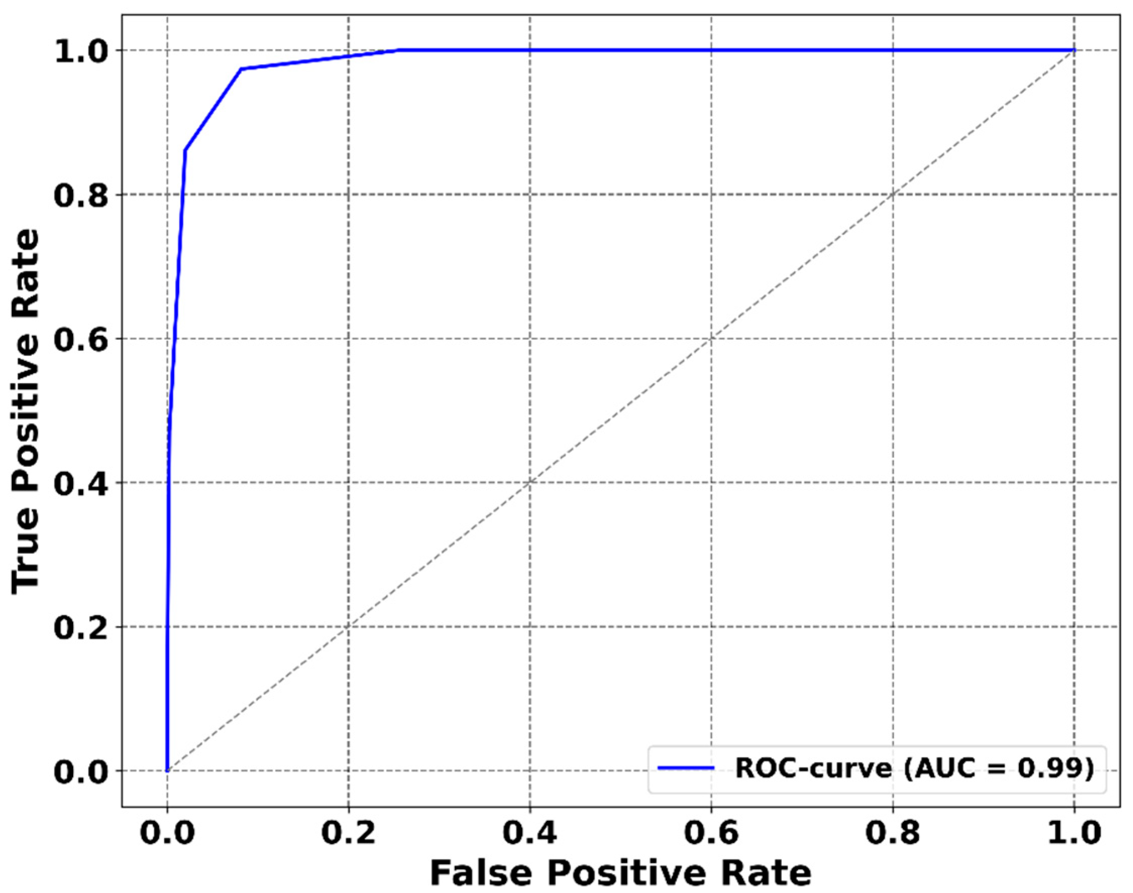 For a more detailed assessment, a ROC curve was constructed using the local K (AAA) index as a classifier of geomagnetic storms relative to the global Kp index (